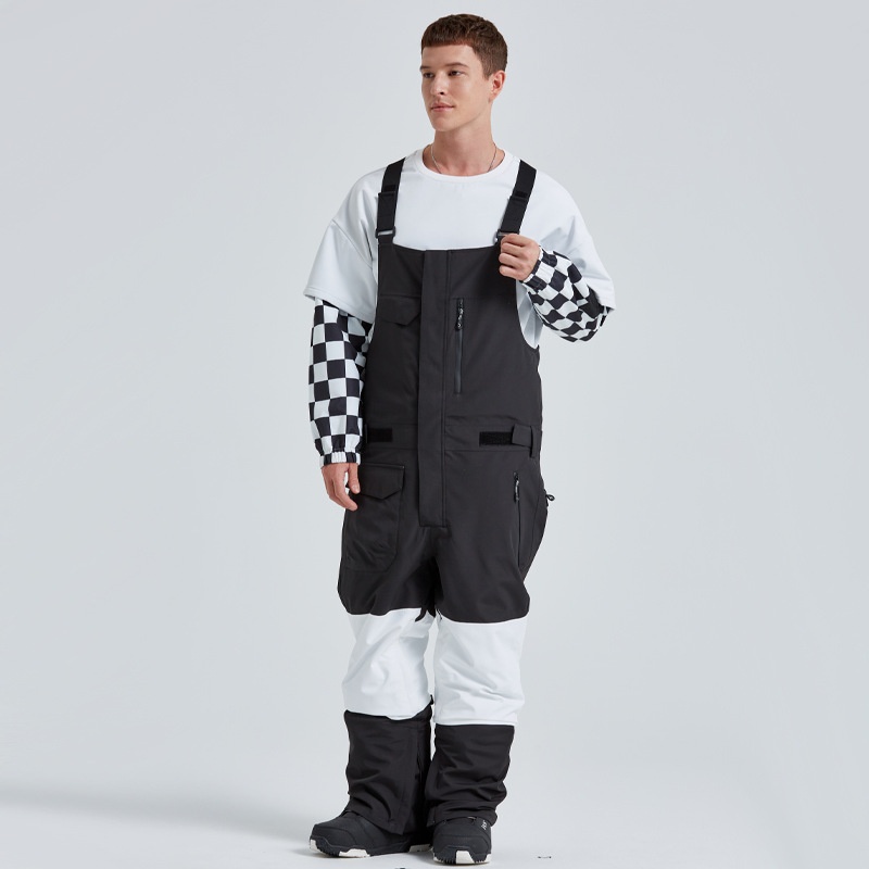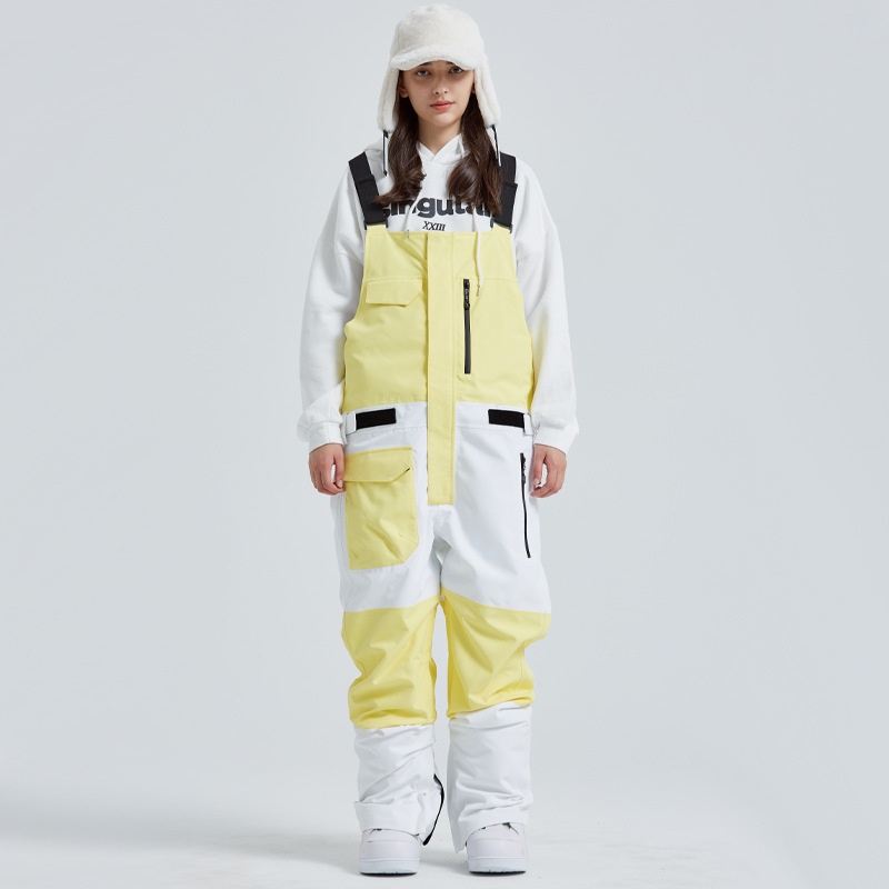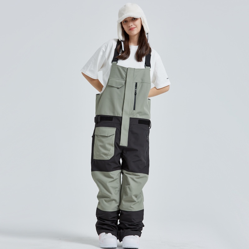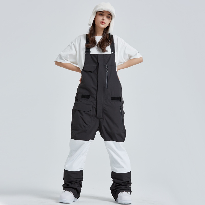 001 2023 Winter New Ski Bib Waterproof Patchwork Color Block Slim Unisex Warm Snow Pants