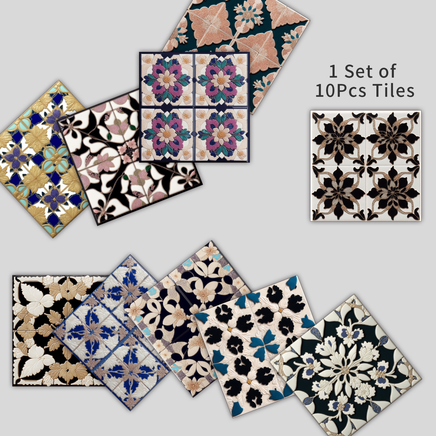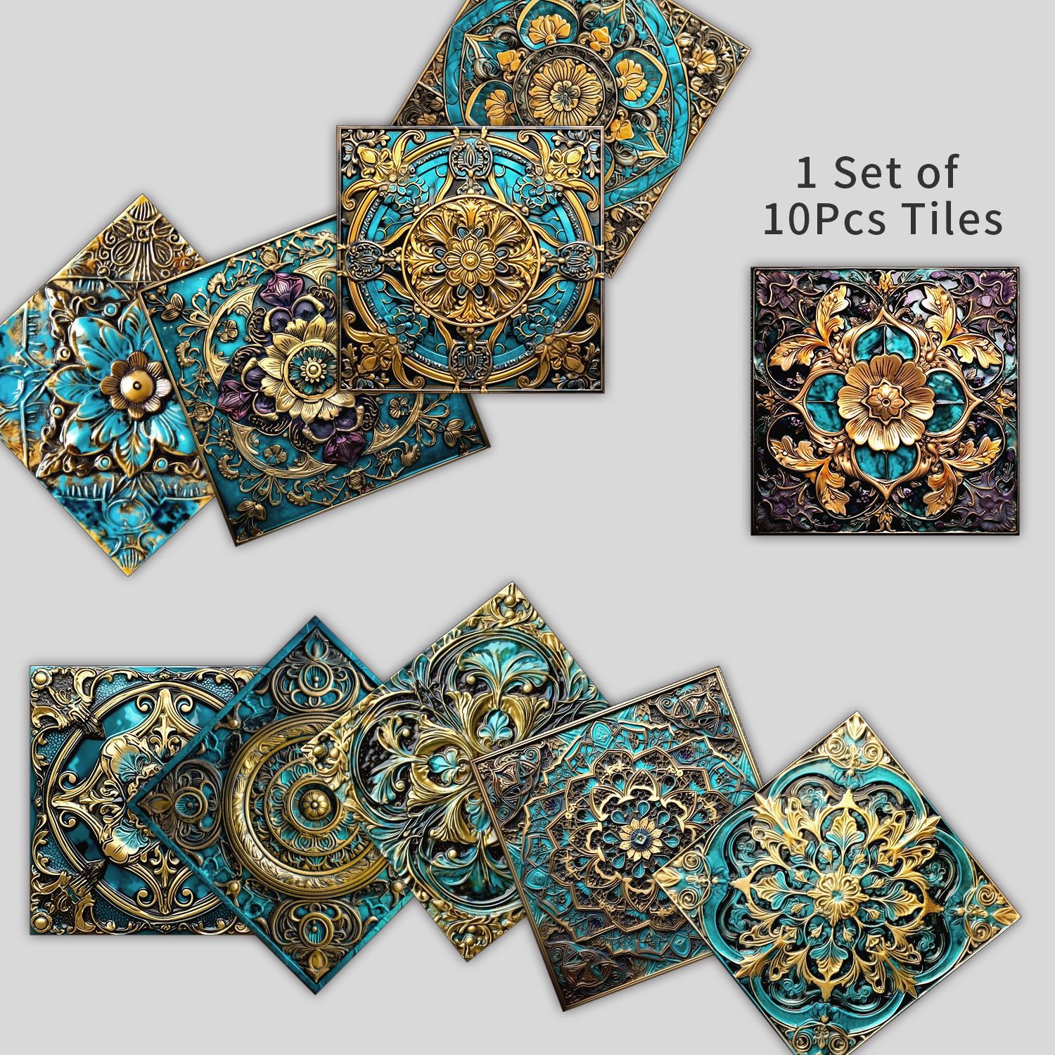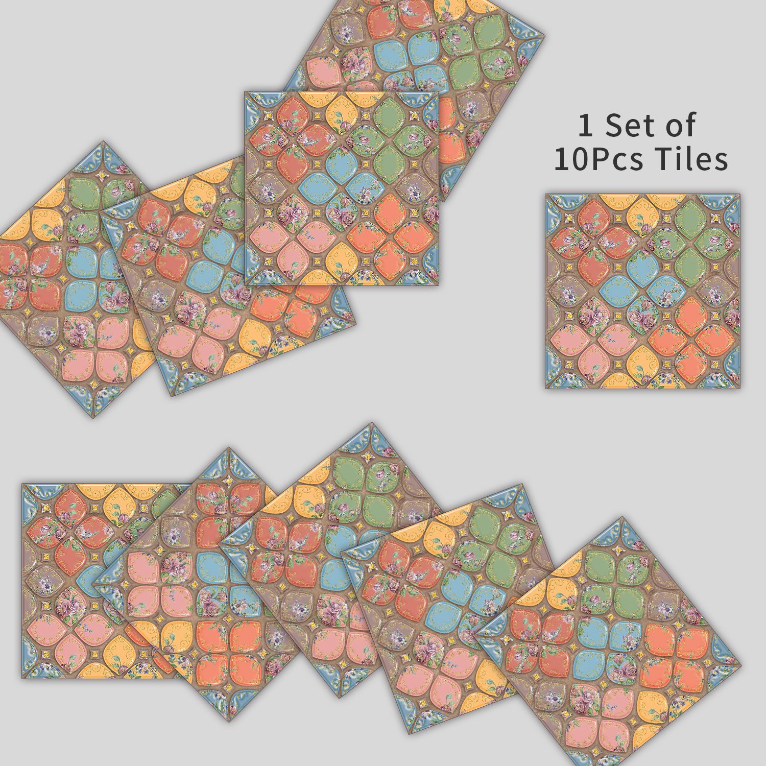 10 Pieces European Style Tile Self-Adhesive Wall Stickers Crystal Thickened Tile Stickers Waterproof Oil-Proof Kitchen Wall Decoration Wallpaper