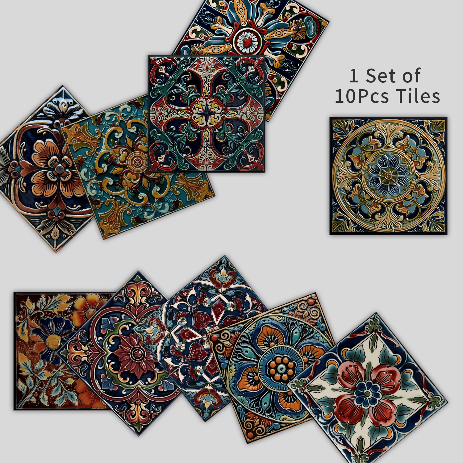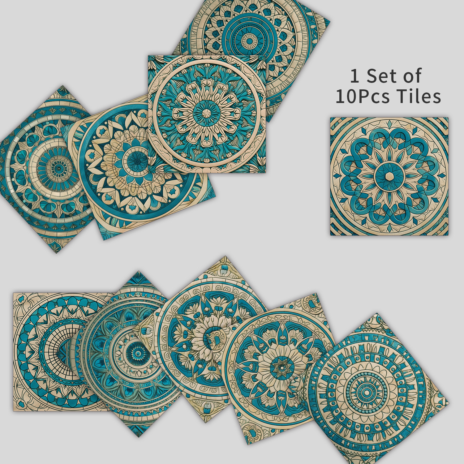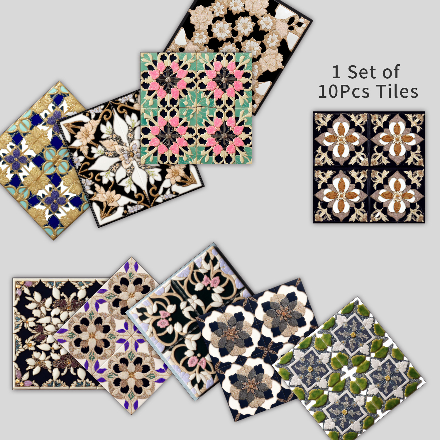 10 Pieces European Style Tile Self-Adhesive Wall Stickers Crystal Thickened Tile Stickers Waterproof Oil-Proof Kitchen Wall Decoration Wallpaper