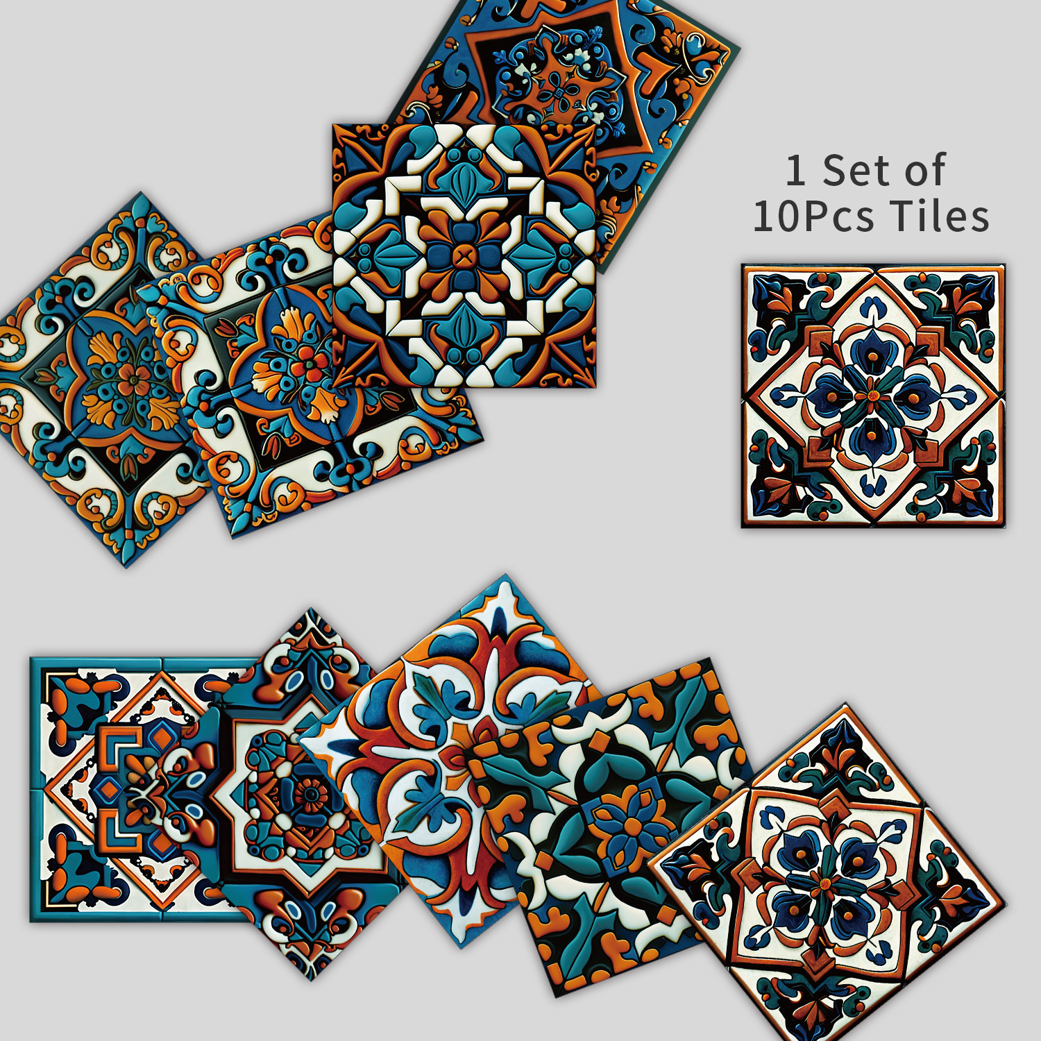 10 Pieces European Style Self-Adhesive Crystal Thickened Tile Stickers Waterproof Oil-Proof Kitchen Wall Decoration