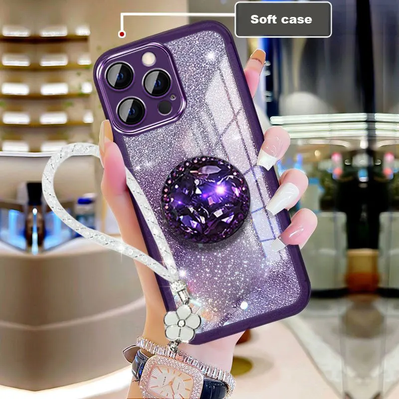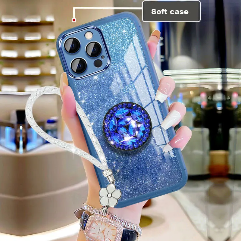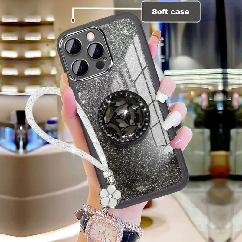 15promax Case Bling Glitter Lanyard Diamond Holder Case For iphone 15Plus 14 13 12 11 Pro max 15 Plus Phone Case Silicone Cover