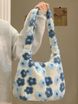 2024 New Single Shoulder Crossbody Tote Large Capacity Women's Autumn/Winter Woolen Bag Plush Lamb Flower