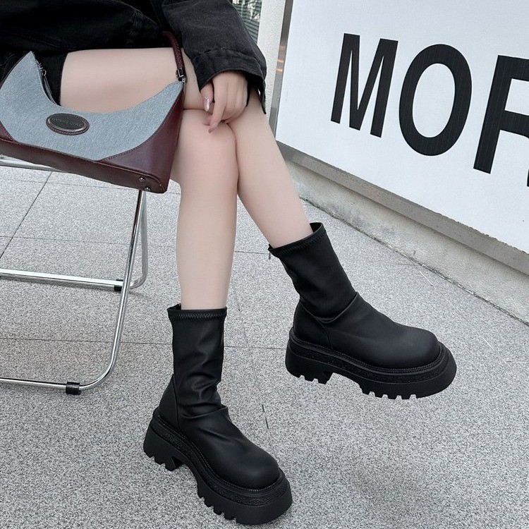 2024 Early Spring New Korean Folded Thick Heel Thick Sole Short Slender Boots Sexy Trendy Comfortable Fashion Boots