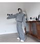 2025 Solid color hooded casual sports suit sleeved men's short style two-piece loose jacket long pants trendy high-end 4649