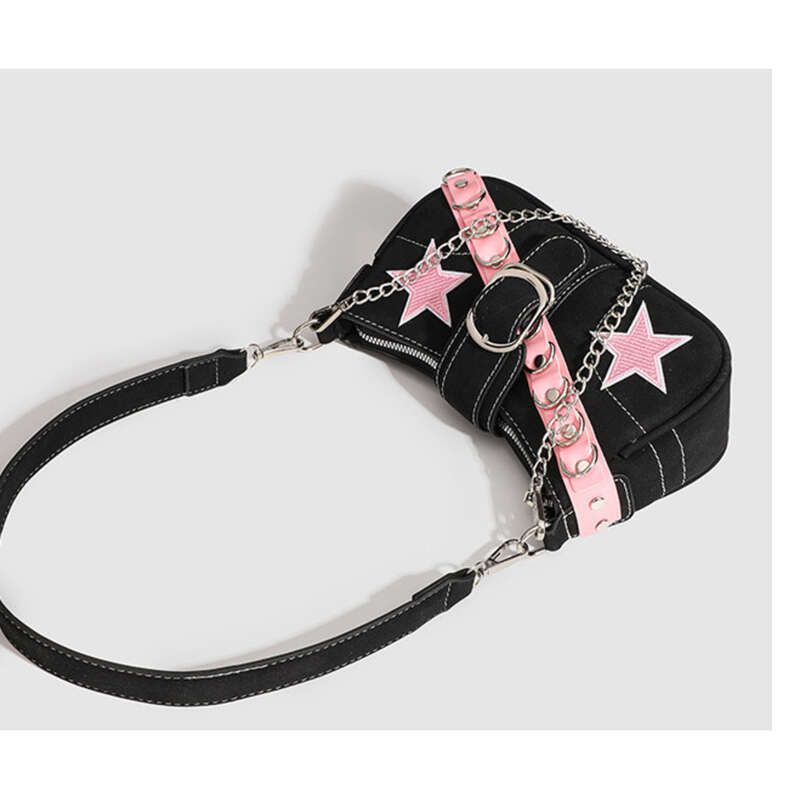 2024 new trendy niche design pink belt star law stick single shoulder bag y2k spicy girl chain underarm bag for women