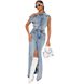 2025 New Women's Casual Solid Color Autumn Winter Split Denim Skirt Two-Piece Set