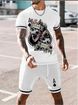 2025 Summer Men's Fashion Street Short-sleeved Suit Simple 3D Printing Casual Beach Two-piece Comfortable And Breathable