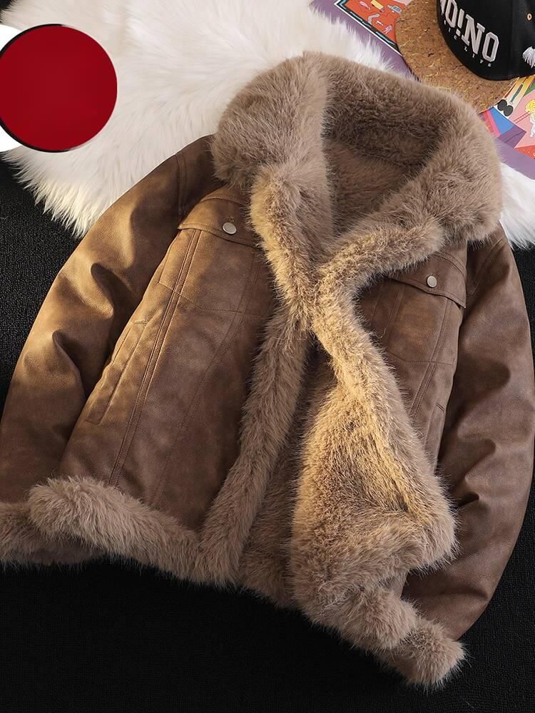 2025 Winter New Reversible Shearling Coat High-End Feel Warm Large Fur Turn-Down Collar Velvet Leather Jacket