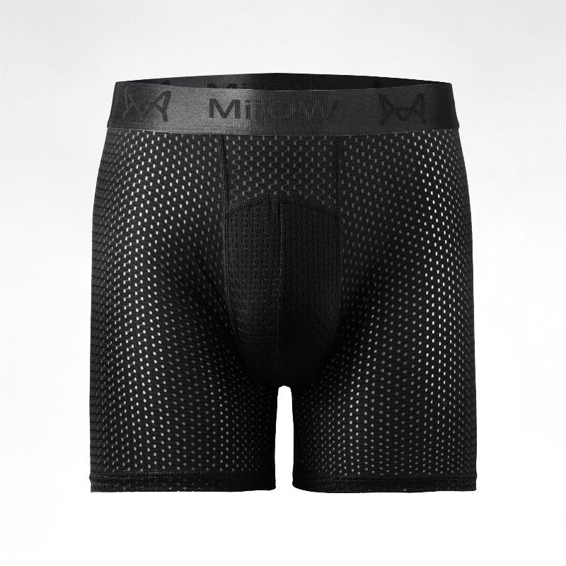 Miiow Men's Sports Underwear Extended Anti-Chafing Boxer Briefs Ice Silk Hollow Breathable Quick-Dry Running Shorts Summer