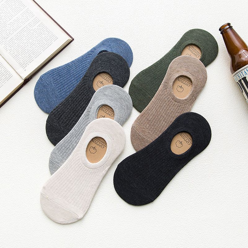 Spring Summer New Men's Invisible Socks Silicone Non-slip Solid Color Striped Short Socks Low-cut Cotton Socks