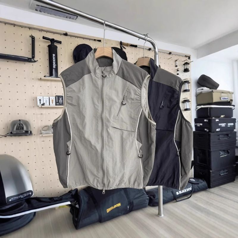 25 New Outdoor Cycling Hiking Sports Workwear Large Pocket Mountain Style Color Block Stand Collar Couple Style Versatile Vest