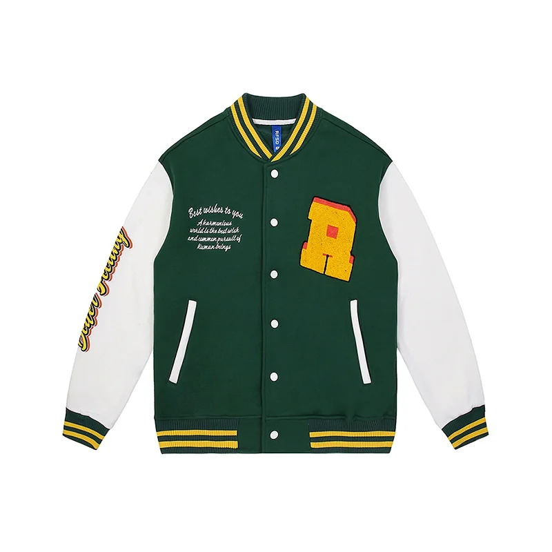 340G Custom Printing Long Sleeve men's Baseball Jacket Men Plain Blank Jackets