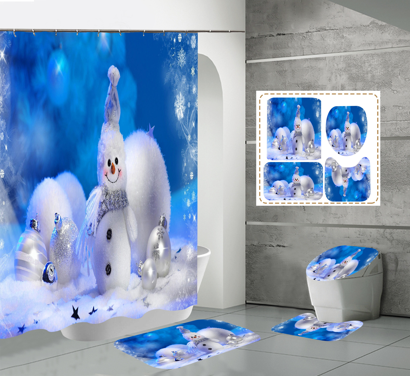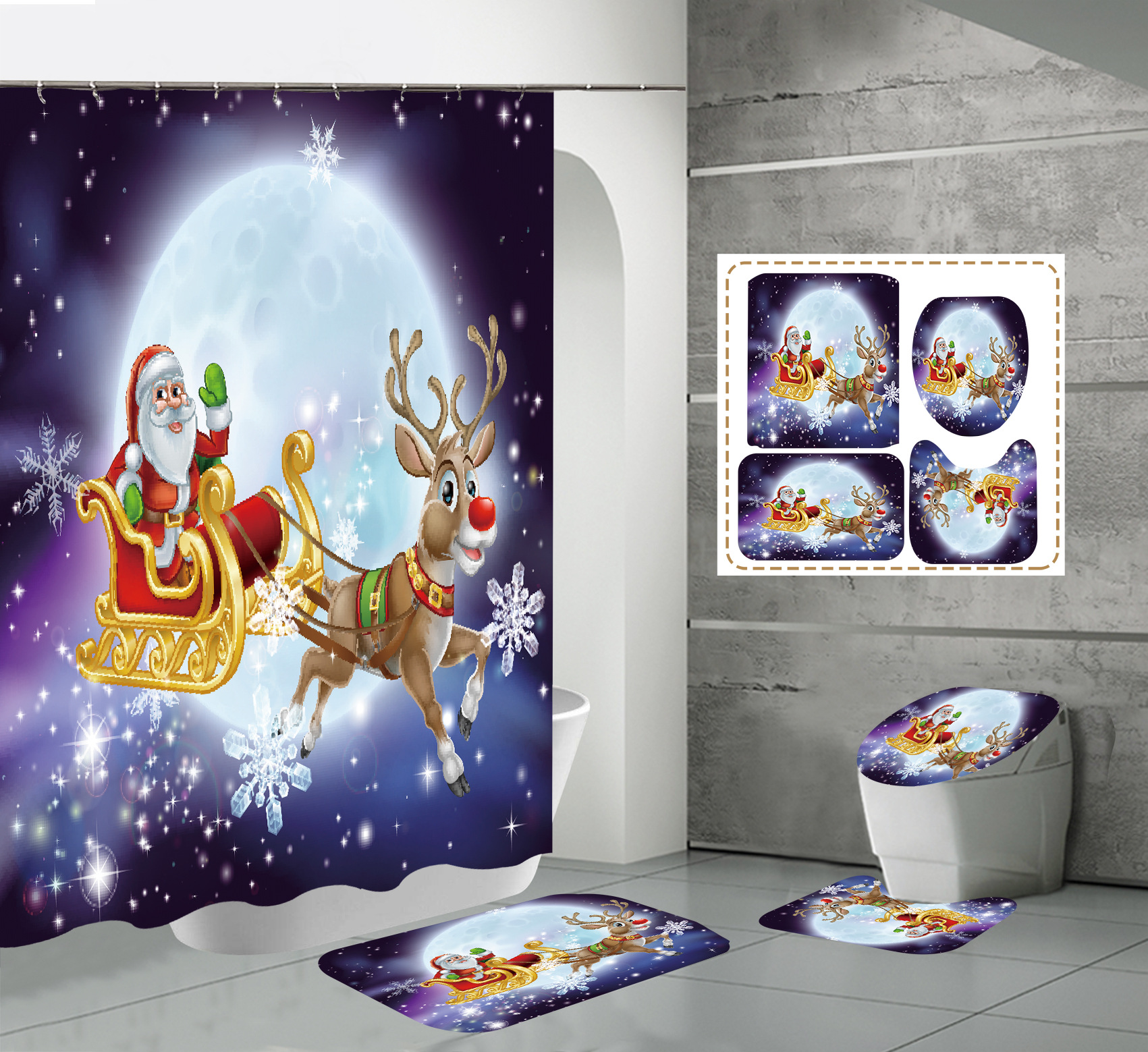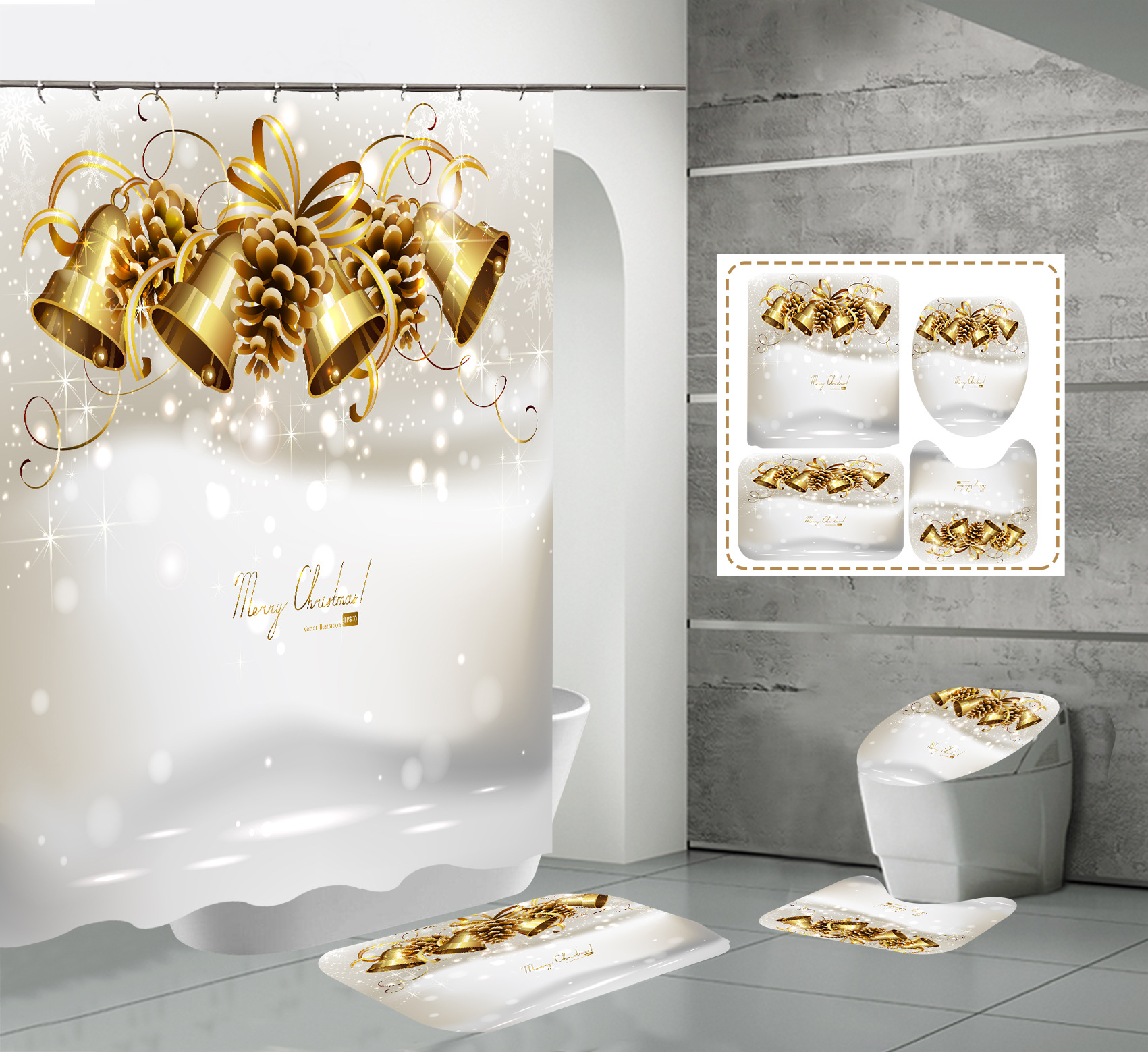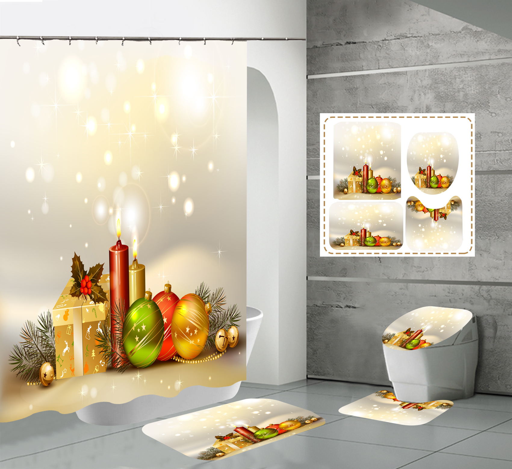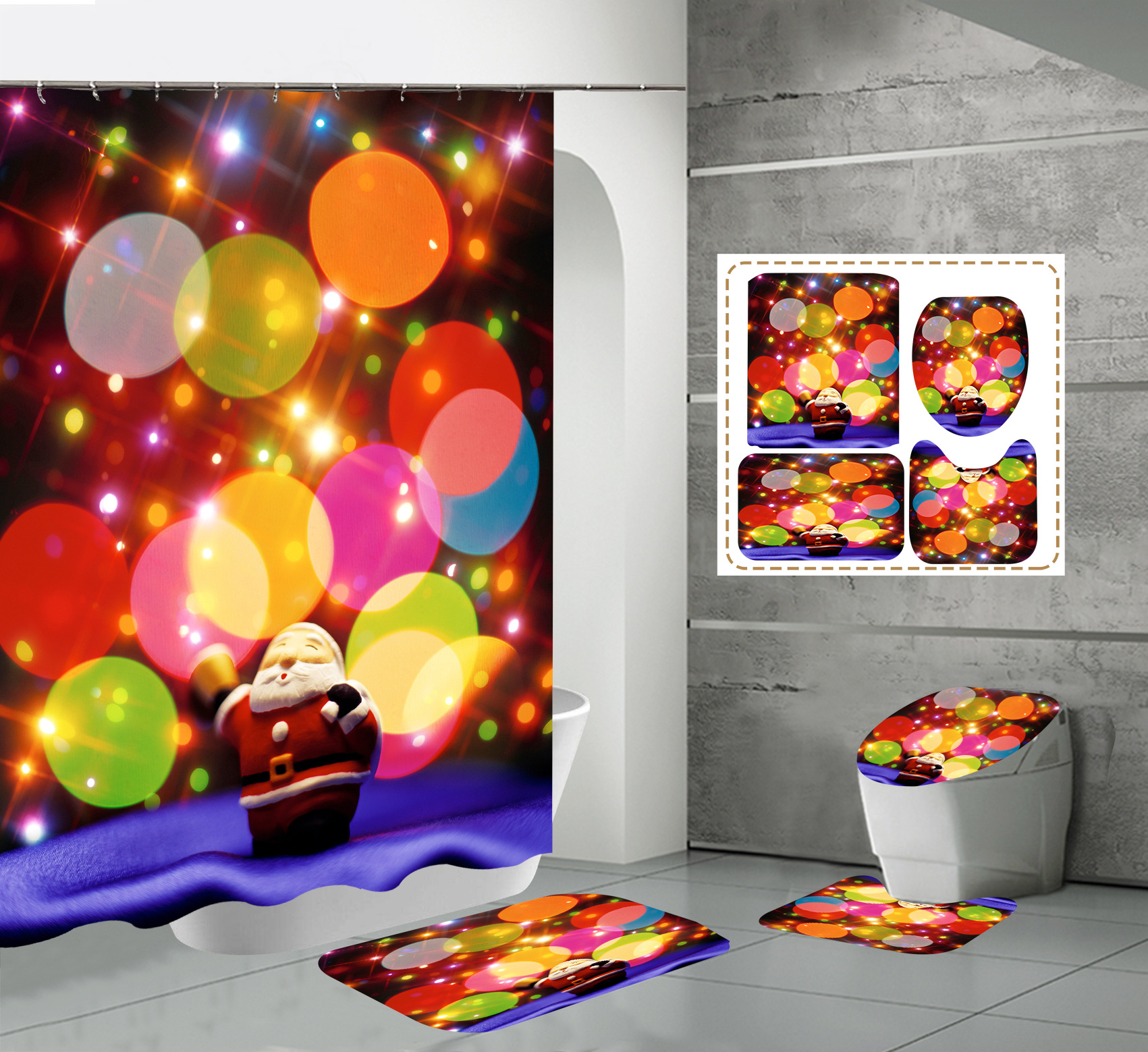 Four piece set shower curtain floor mat U-shaped mat toilet cover 700g