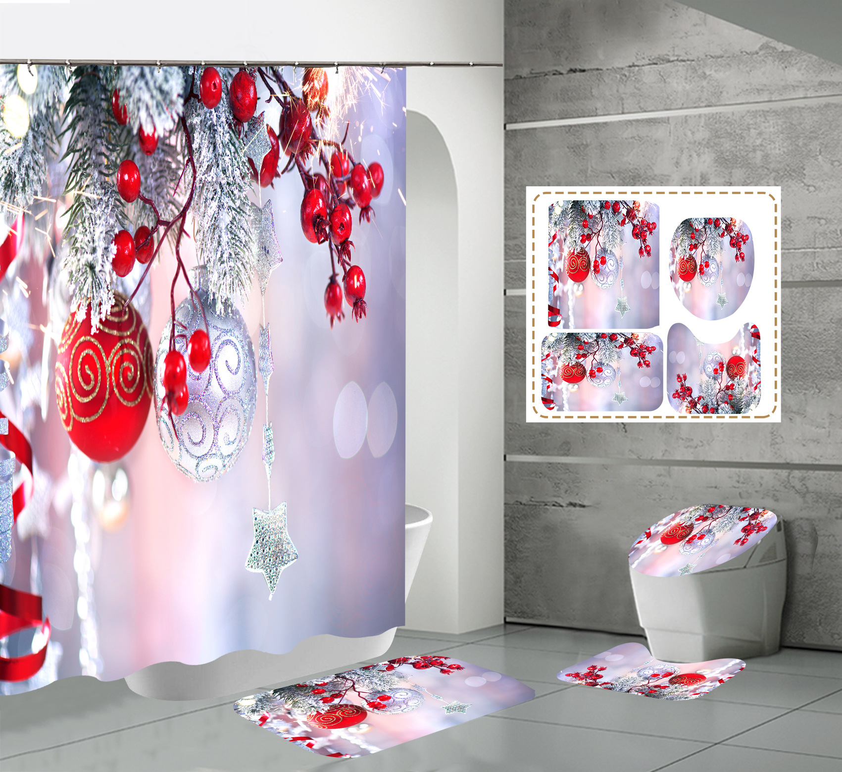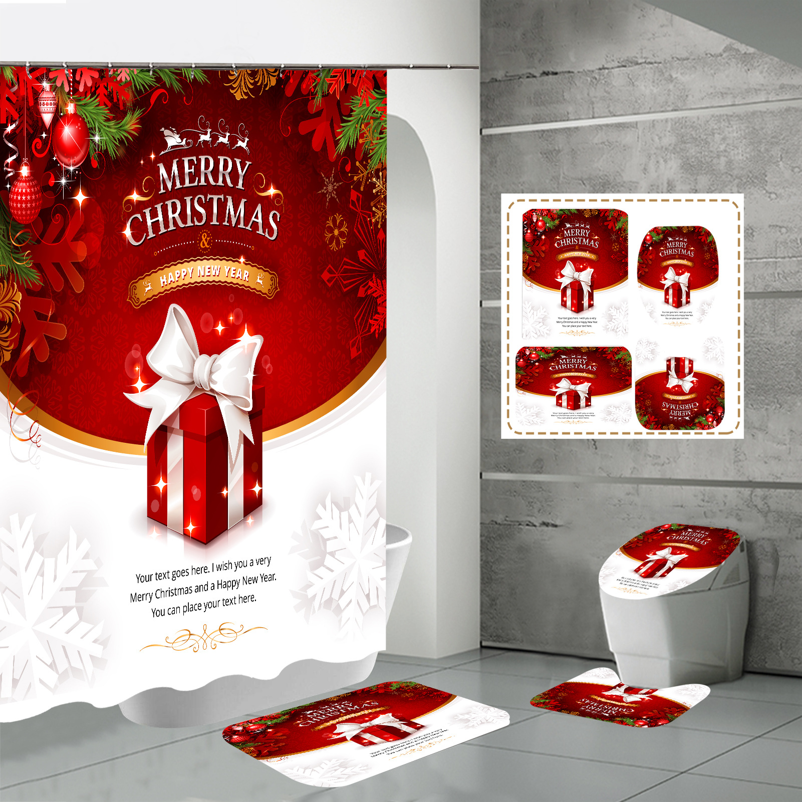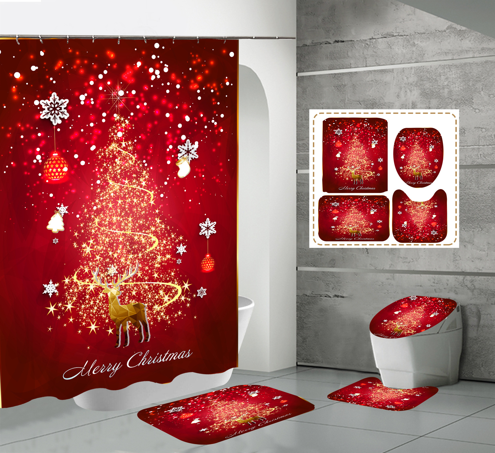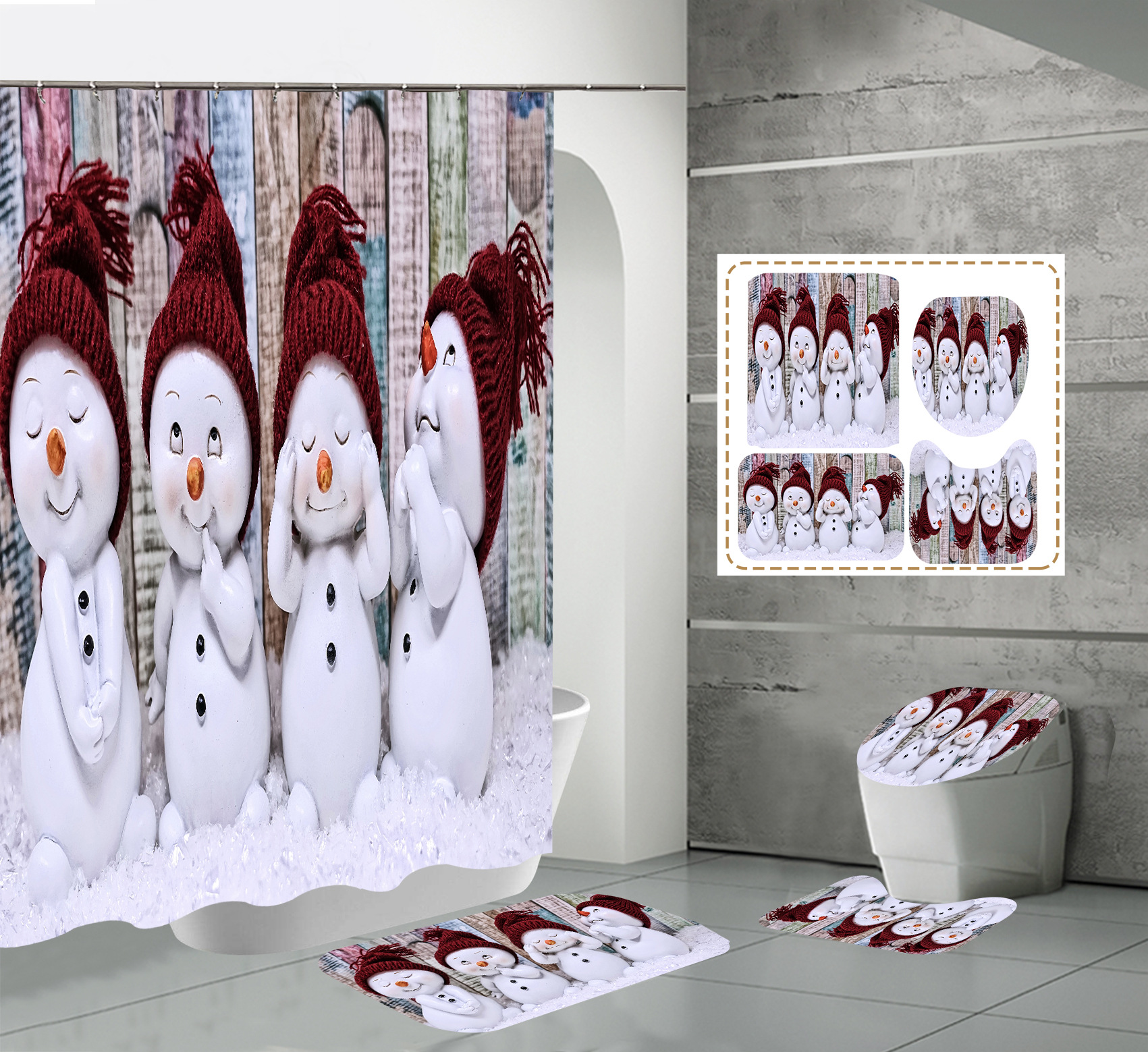 Four piece set shower curtain floor mat U-shaped mat toilet cover 700g