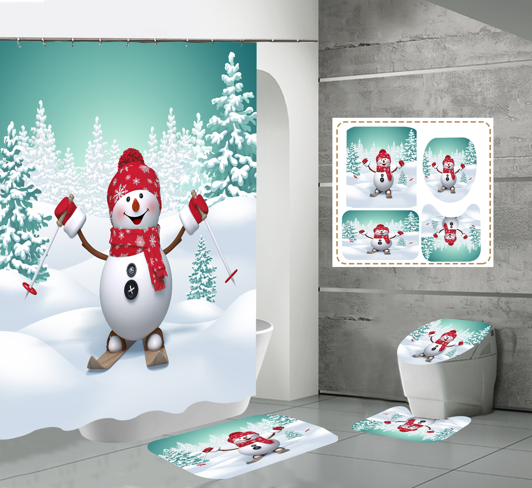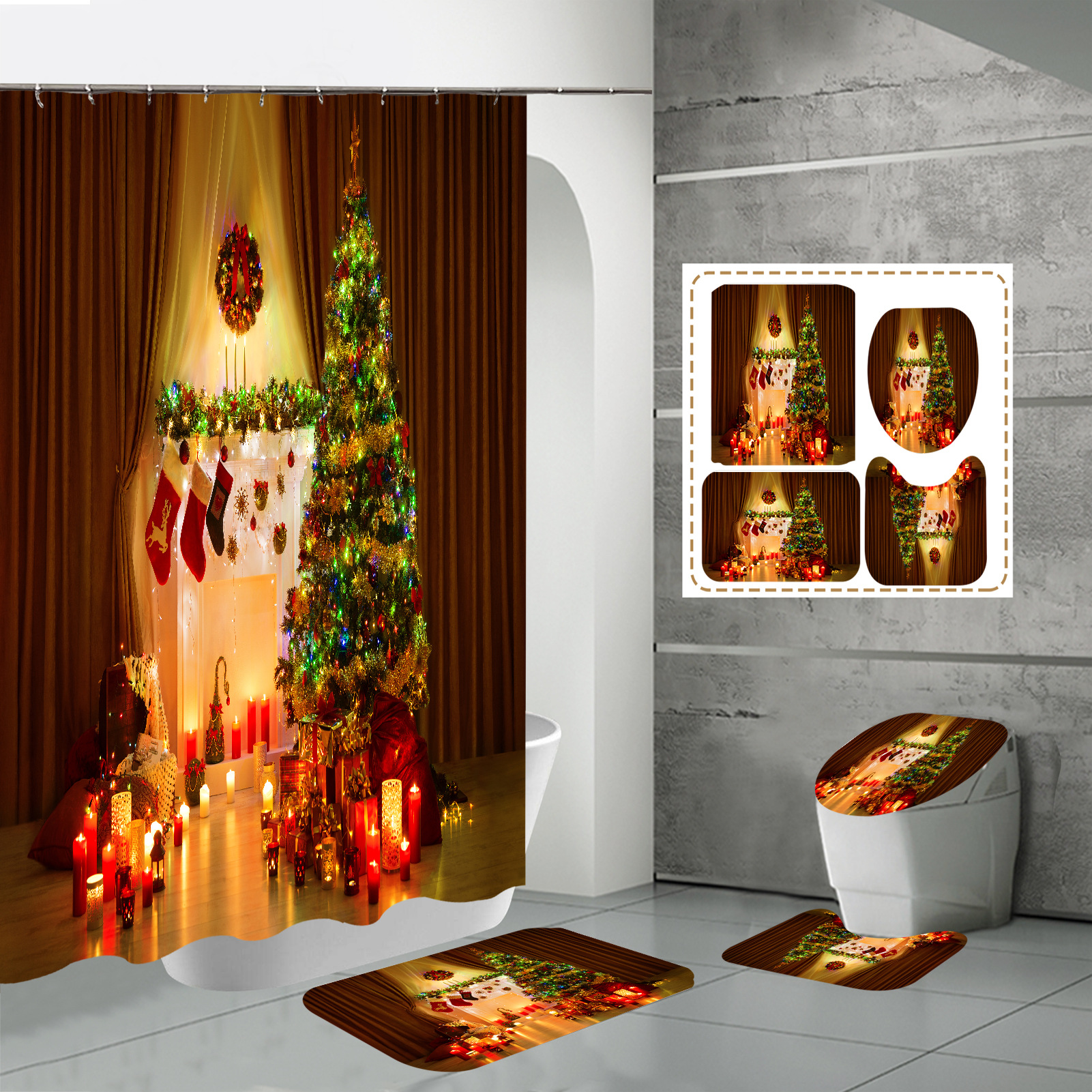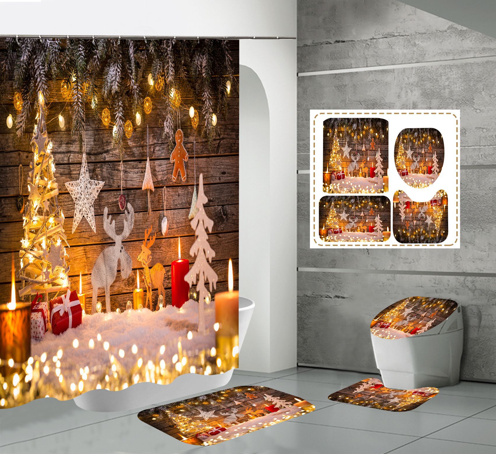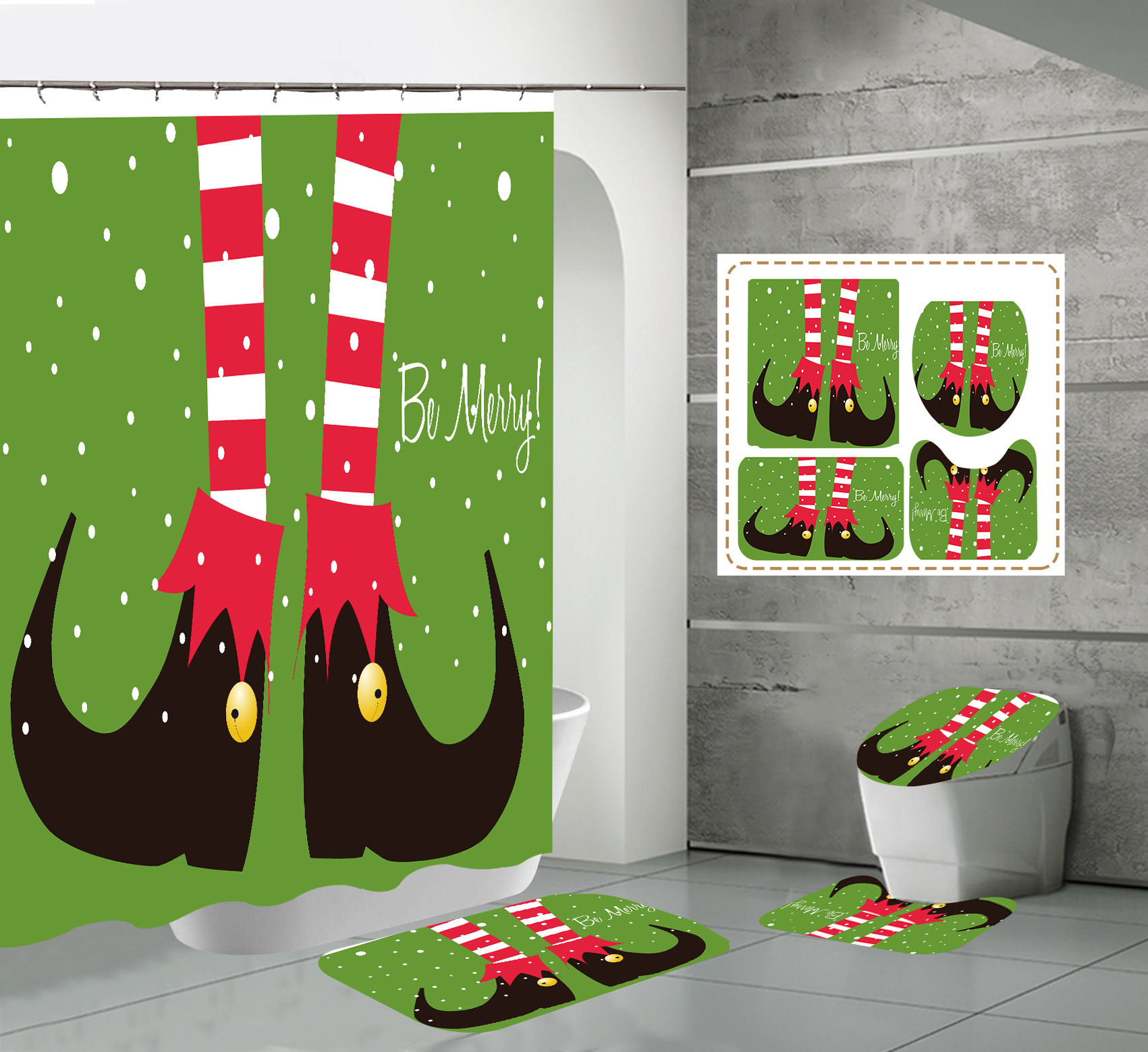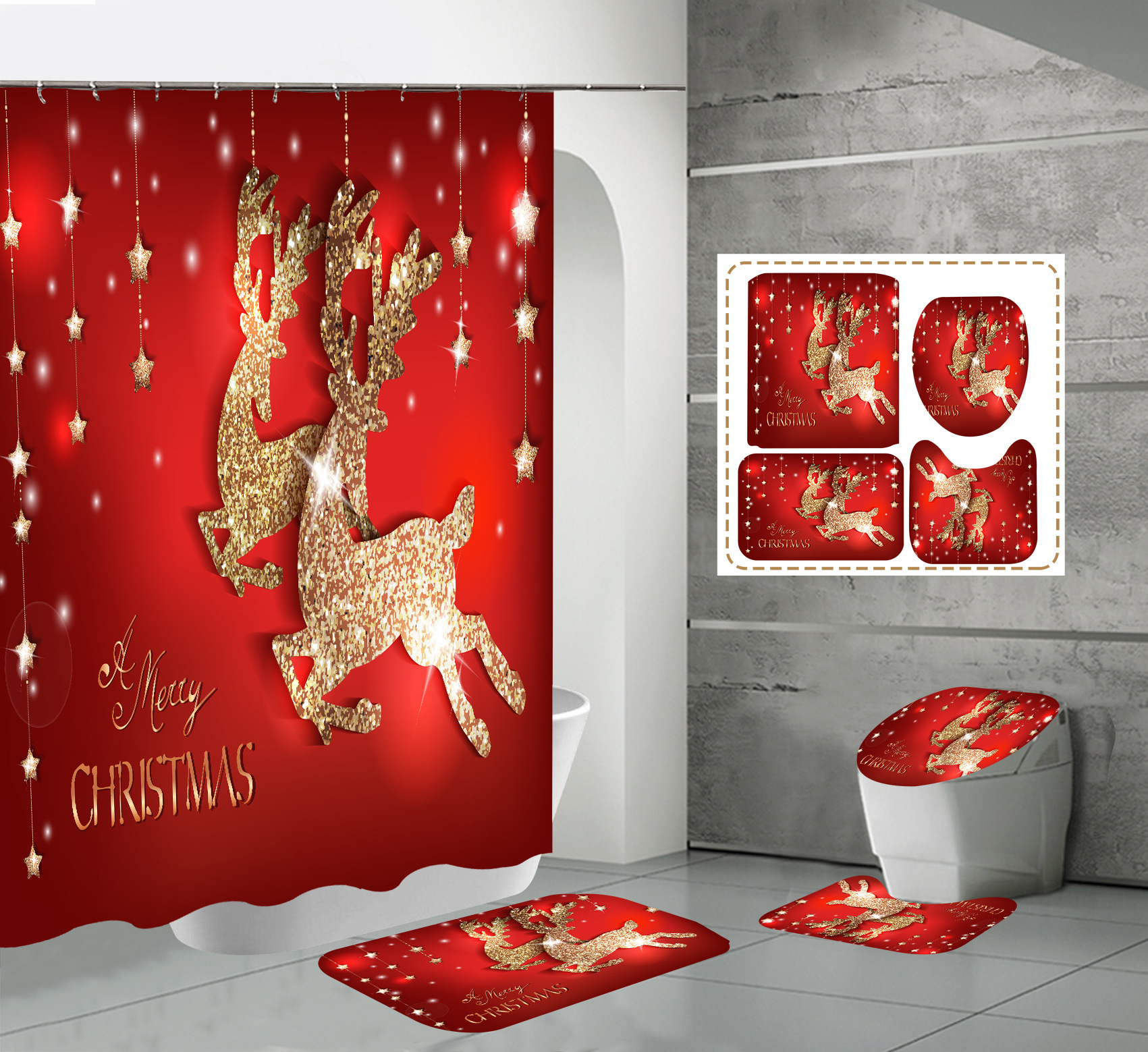 Four piece set shower curtain floor mat U-shaped mat toilet cover 700g