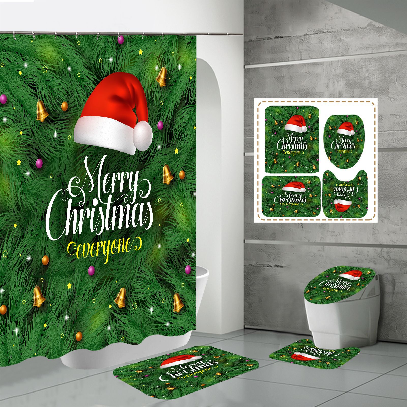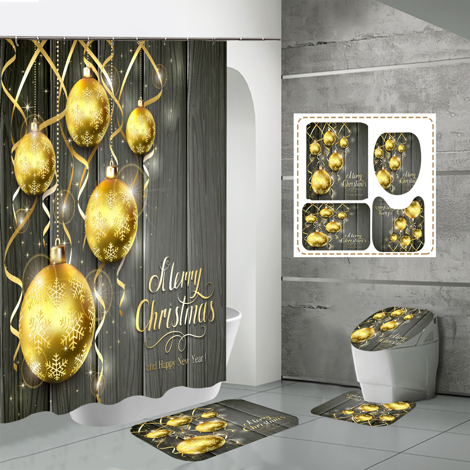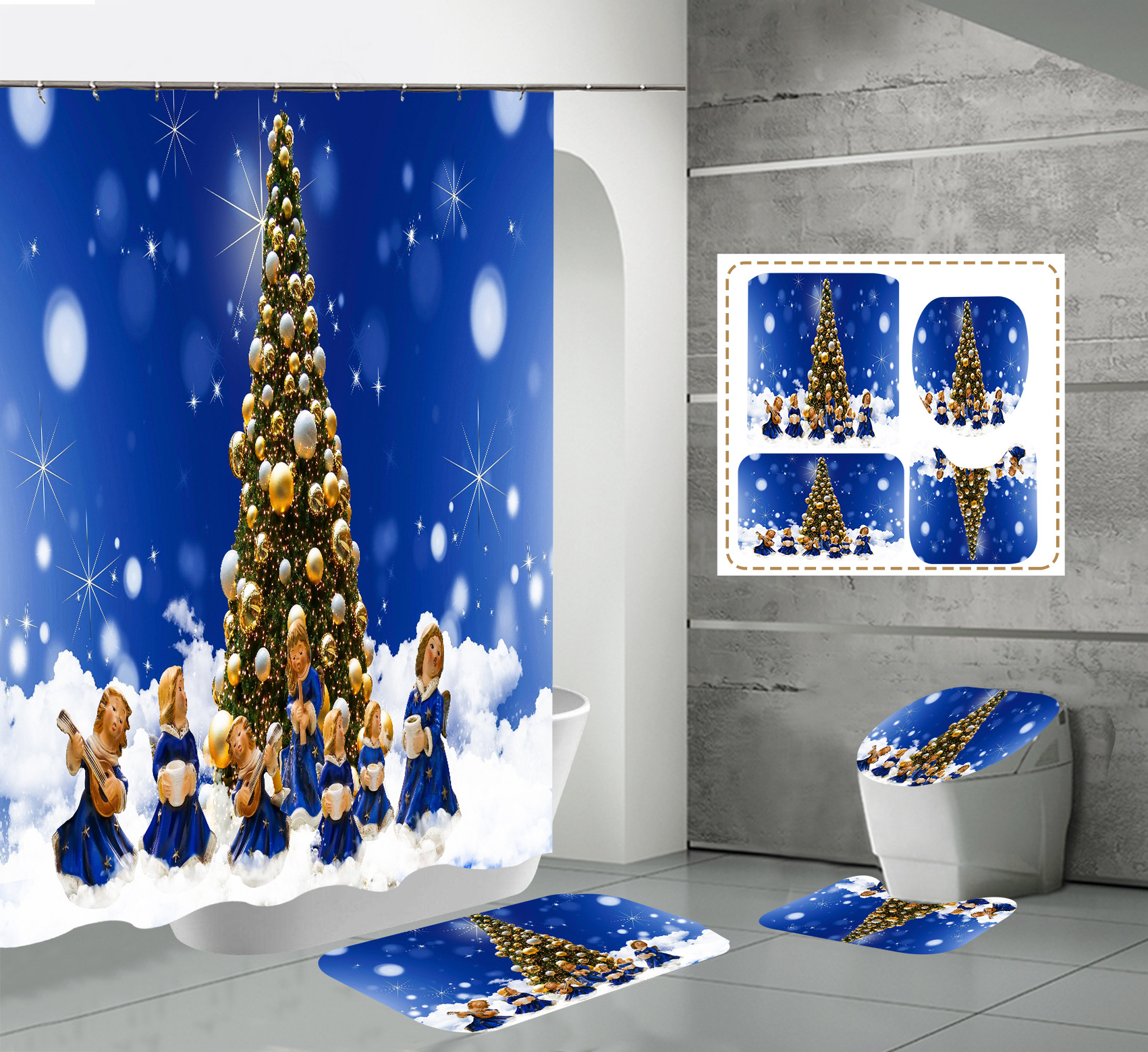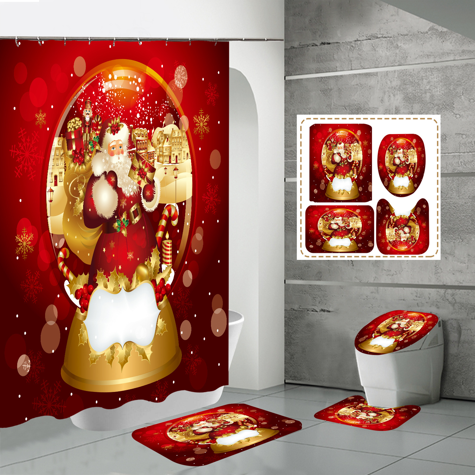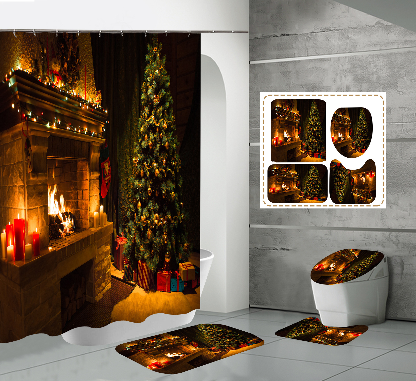 Four piece set shower curtain floor mat U-shaped mat toilet cover 700g