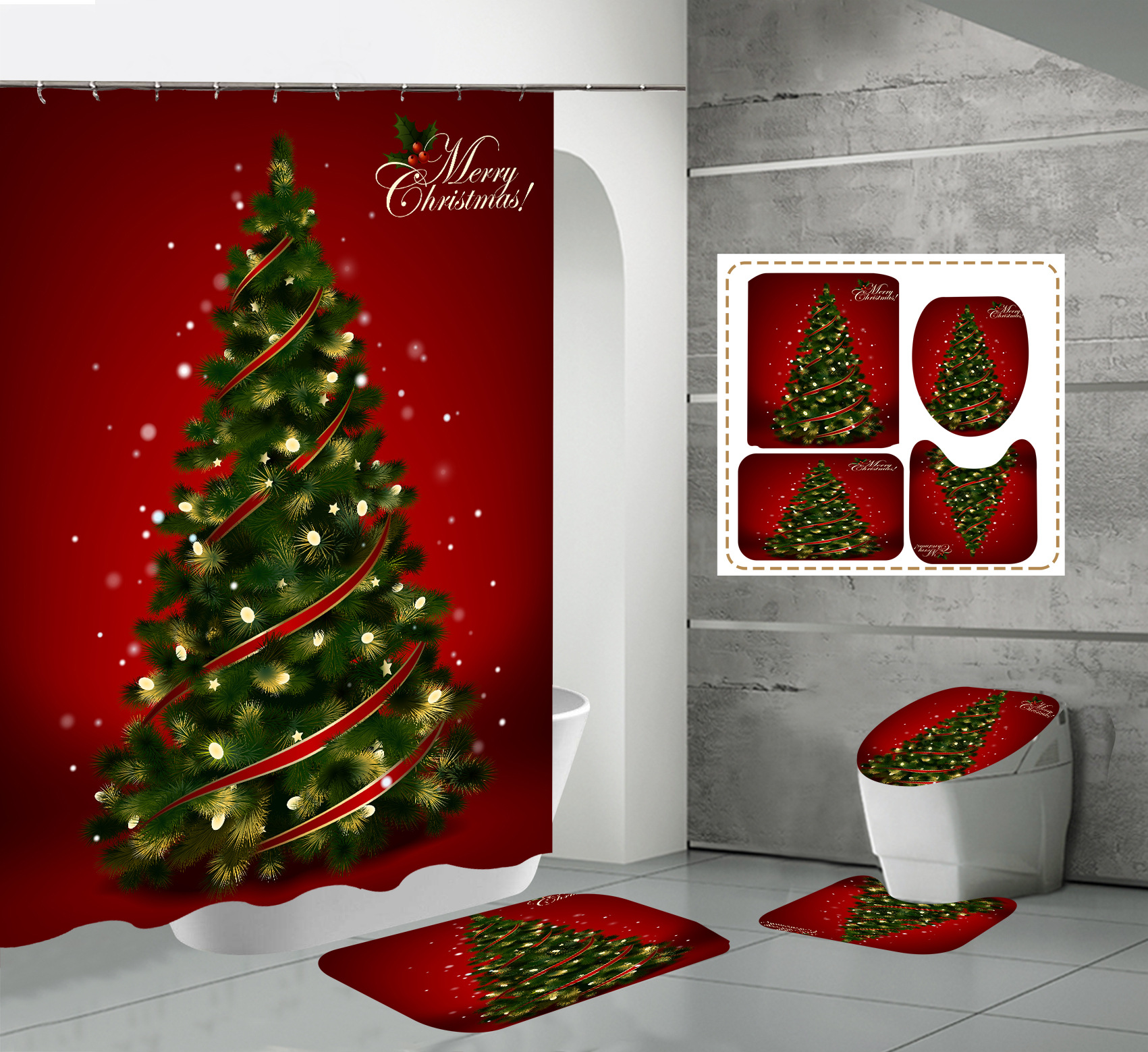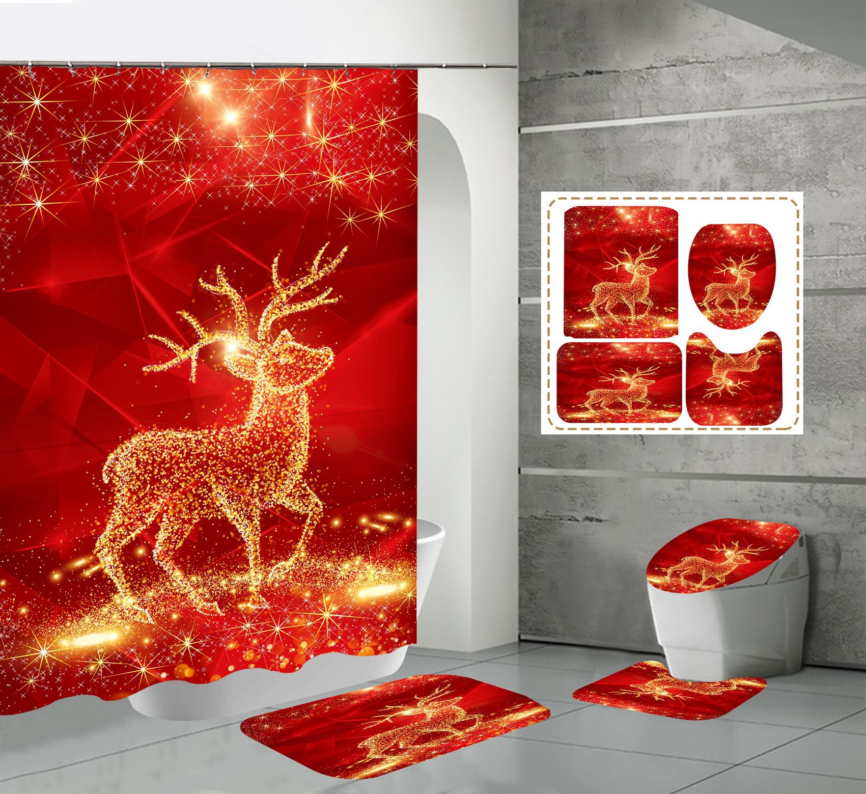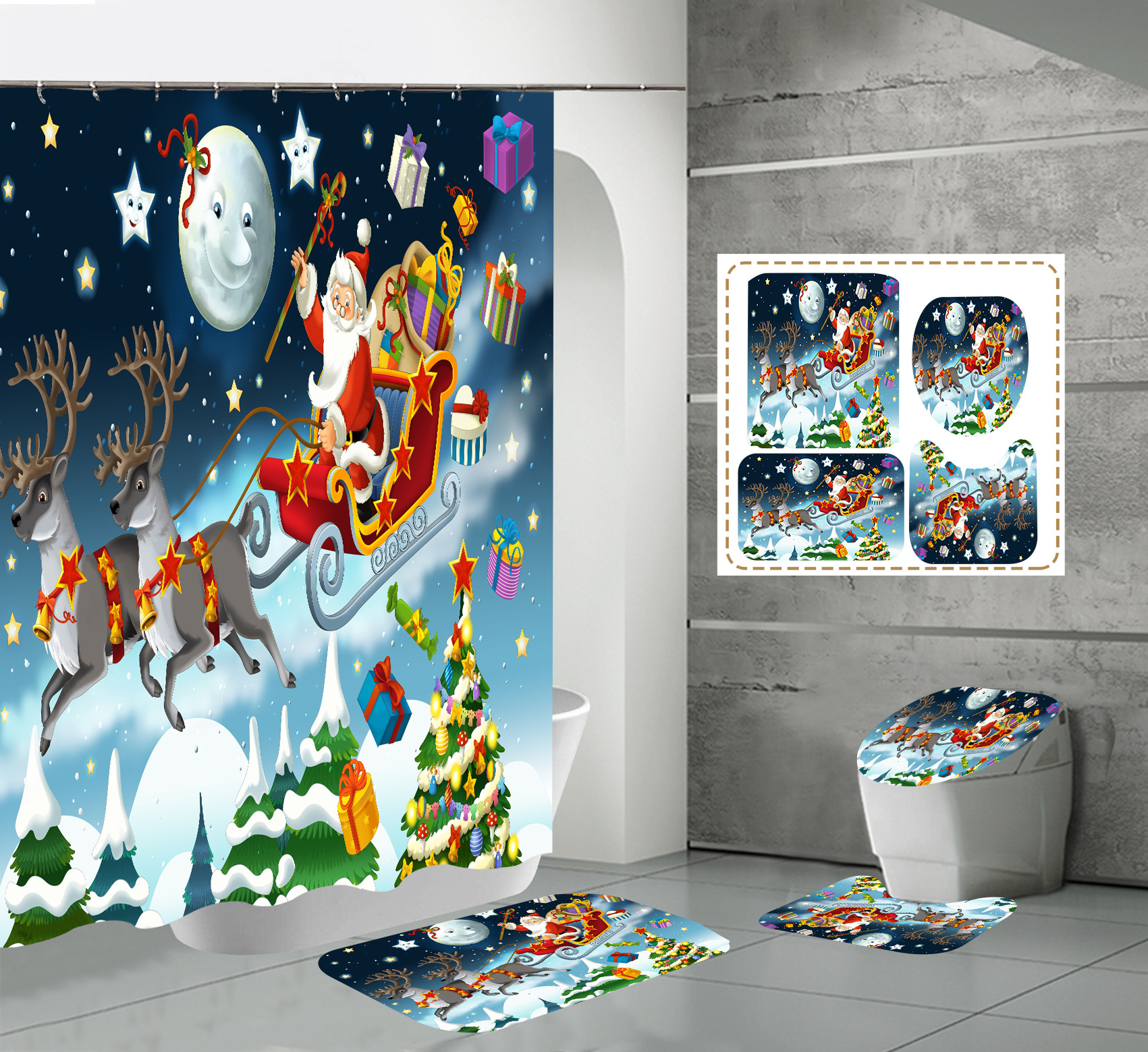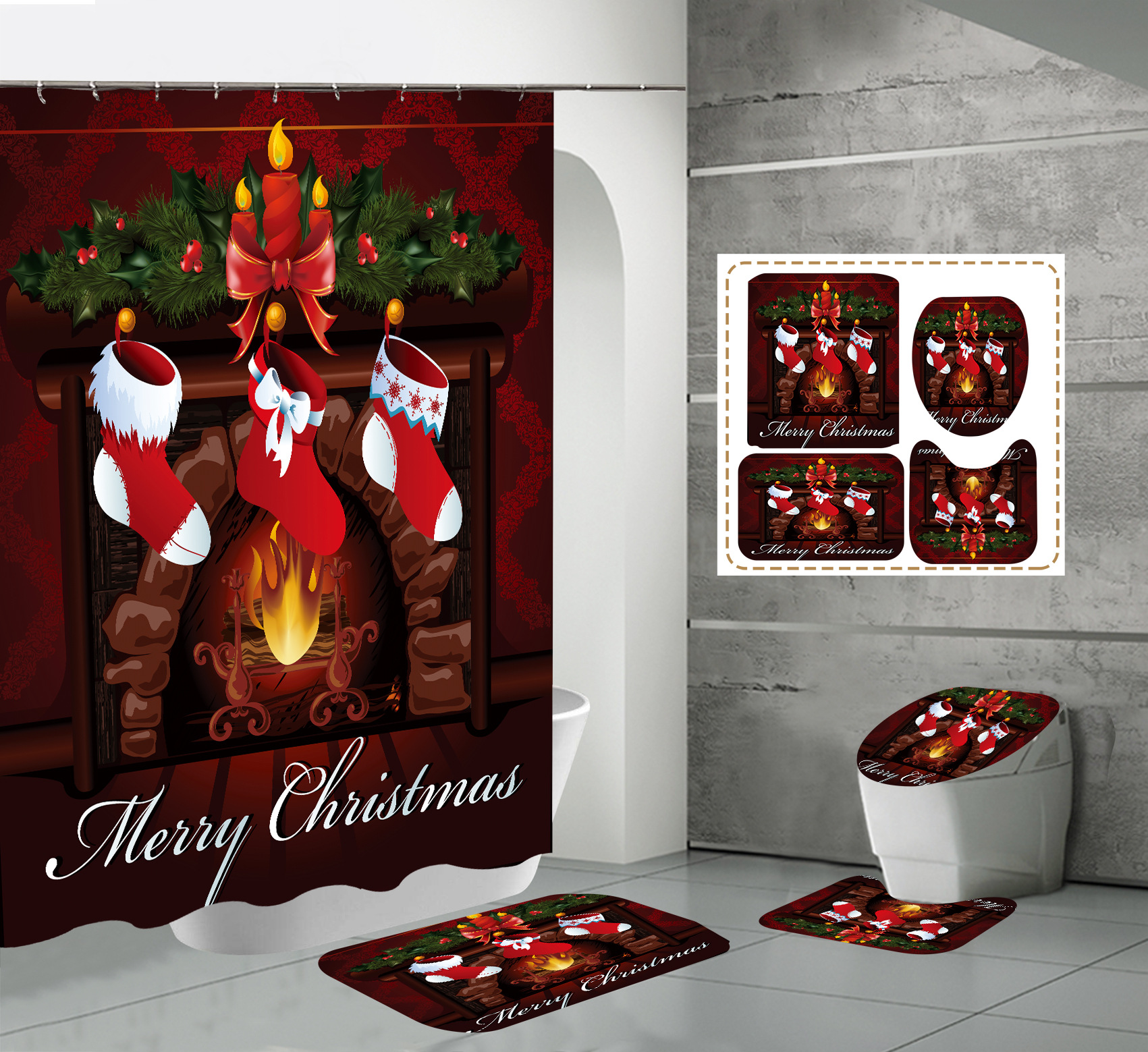 Four piece set shower curtain floor mat U-shaped mat toilet cover 700g