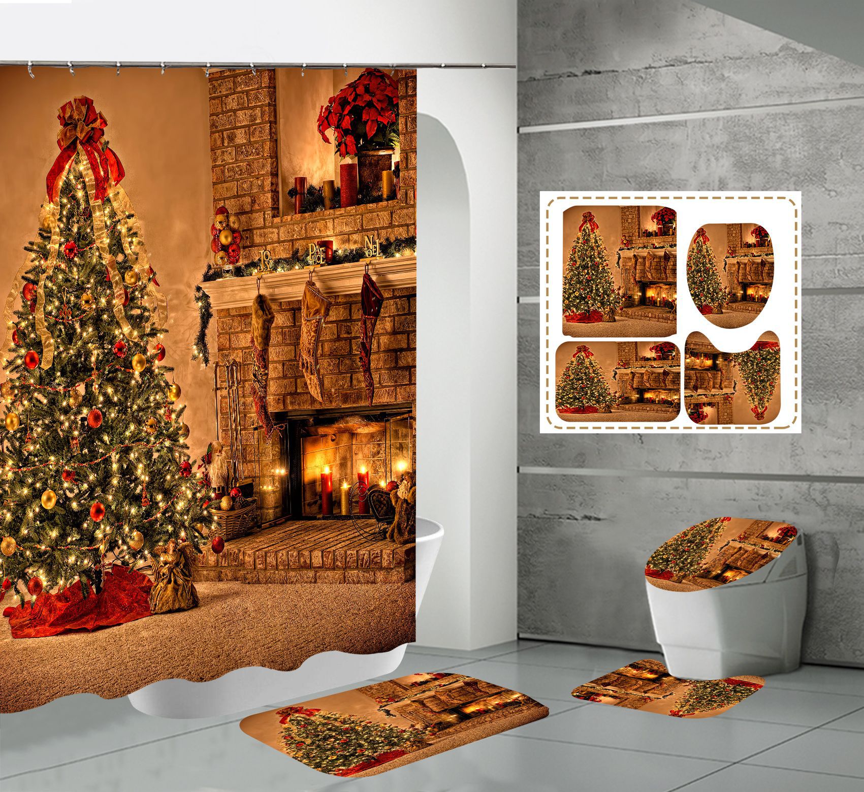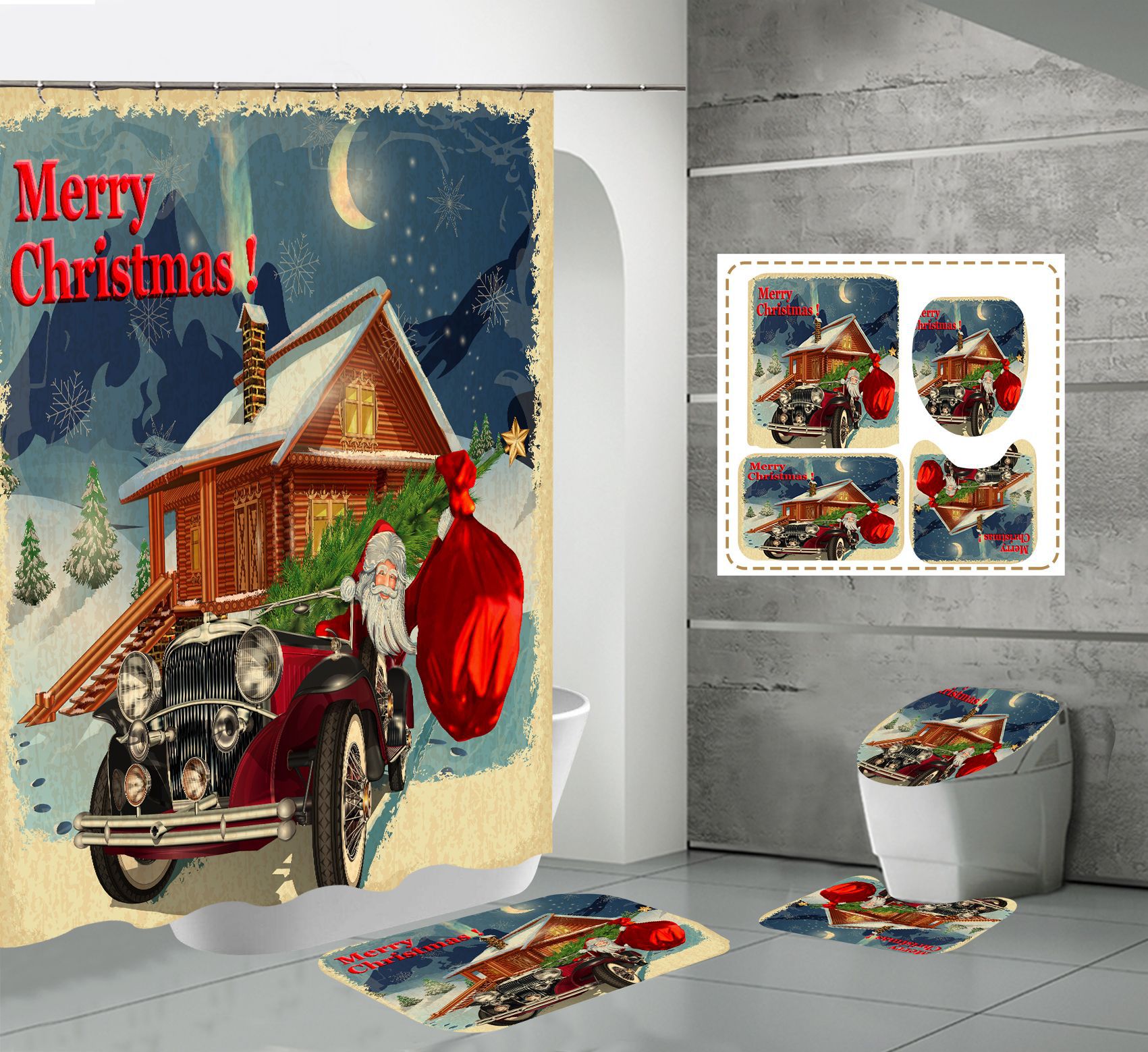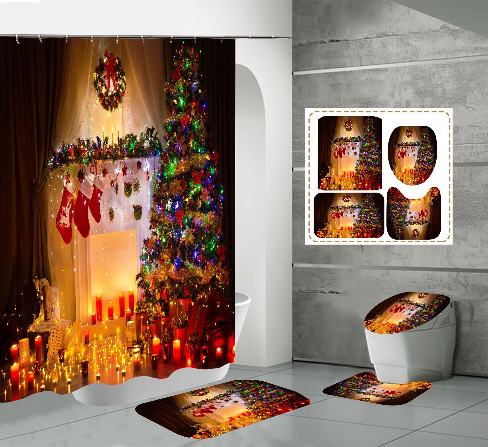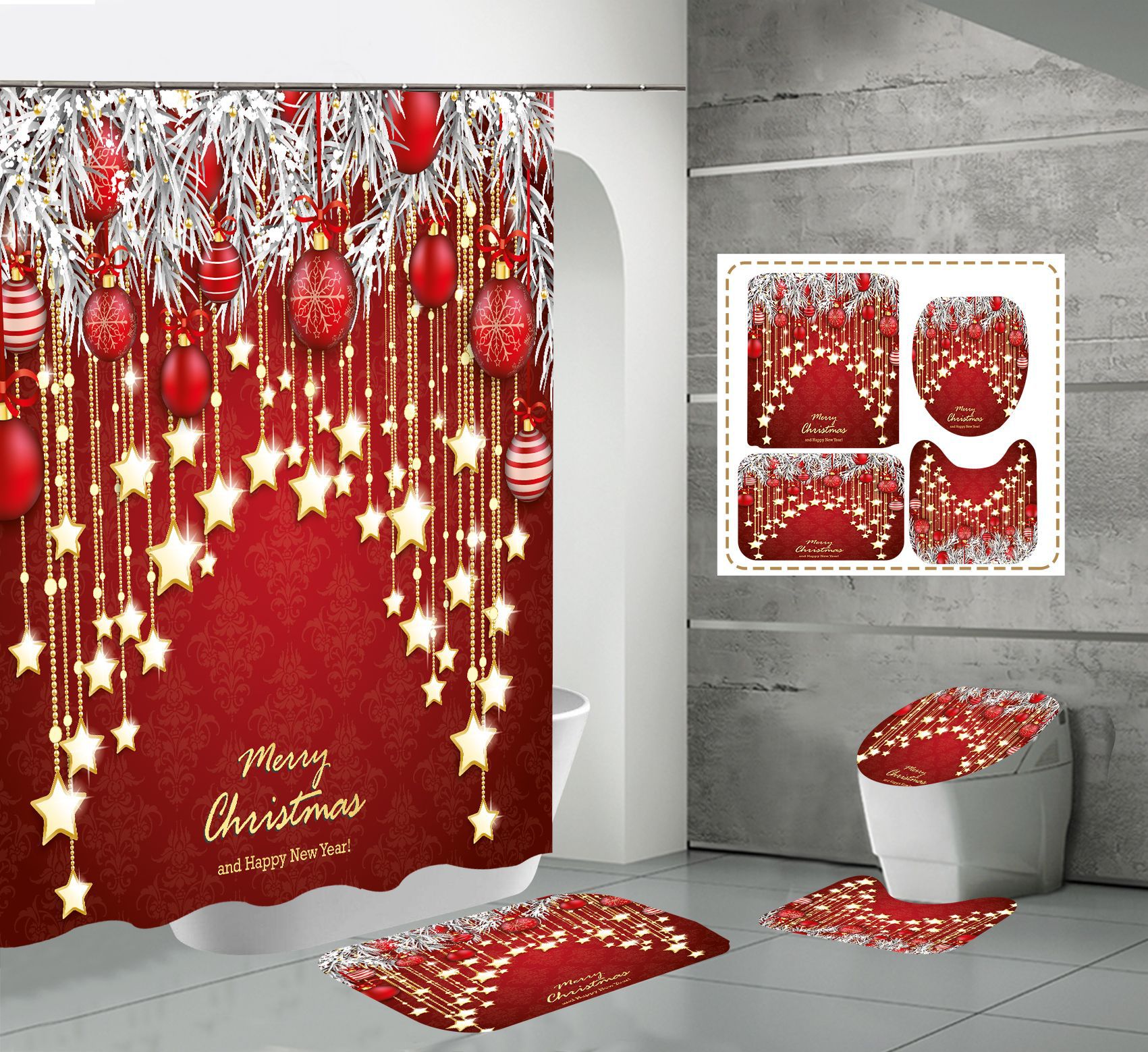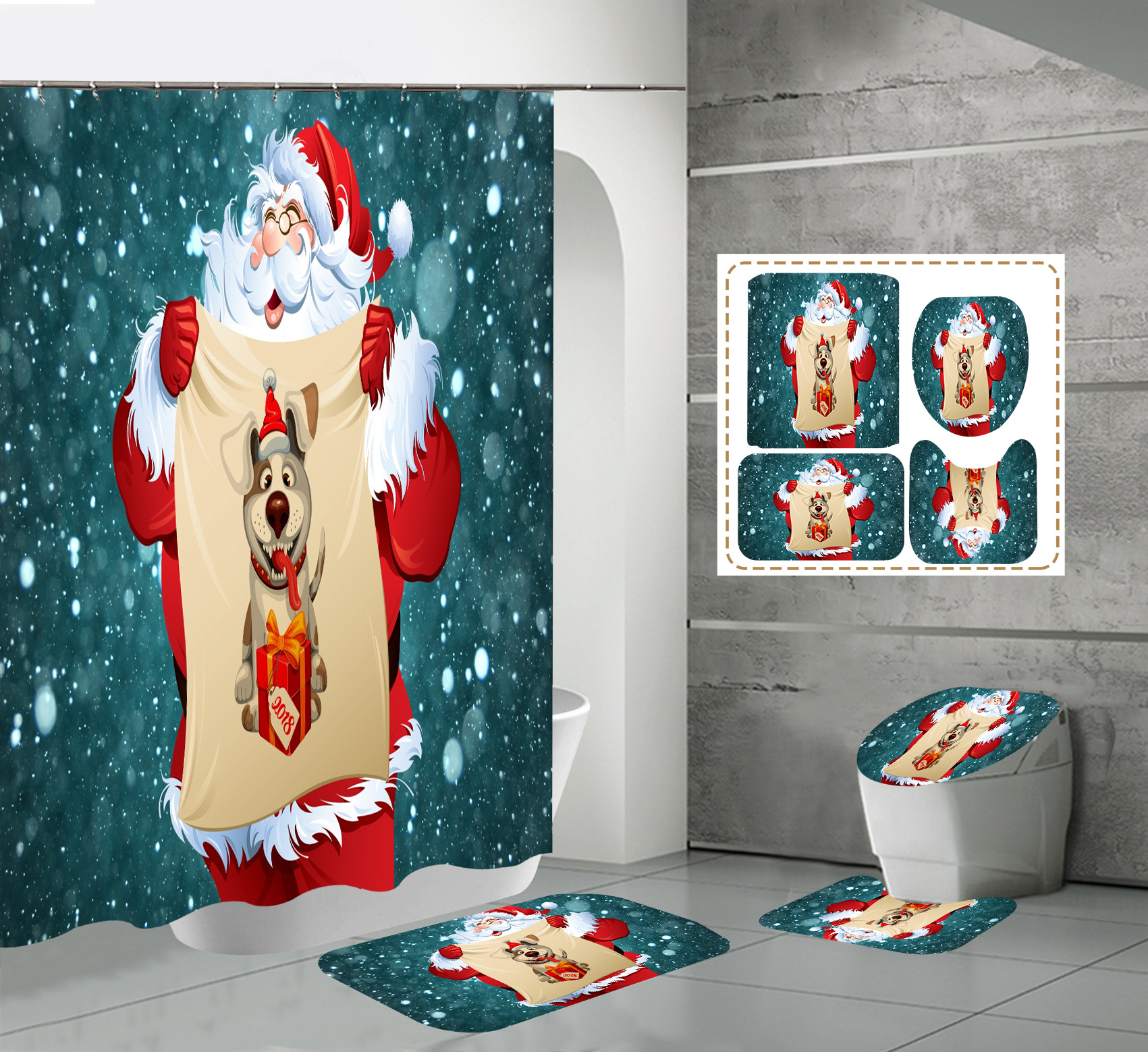 Four piece set shower curtain floor mat U-shaped mat toilet cover 700g