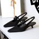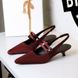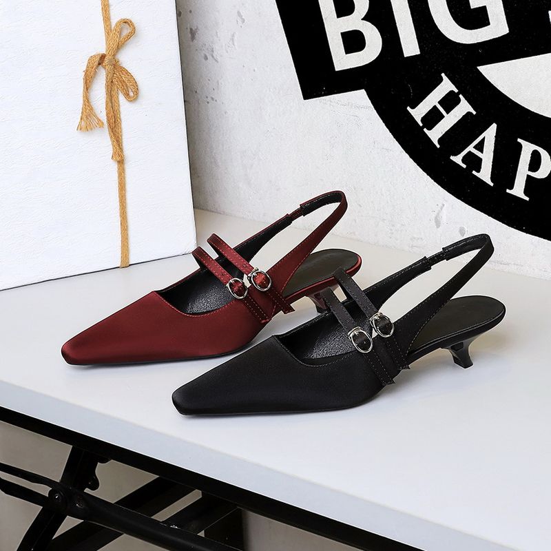 5126 Korean Style Pointed Toe One-Strap Backle Comfortable Low Single Shallow Mouth Wine Gla Heel Satin Women'