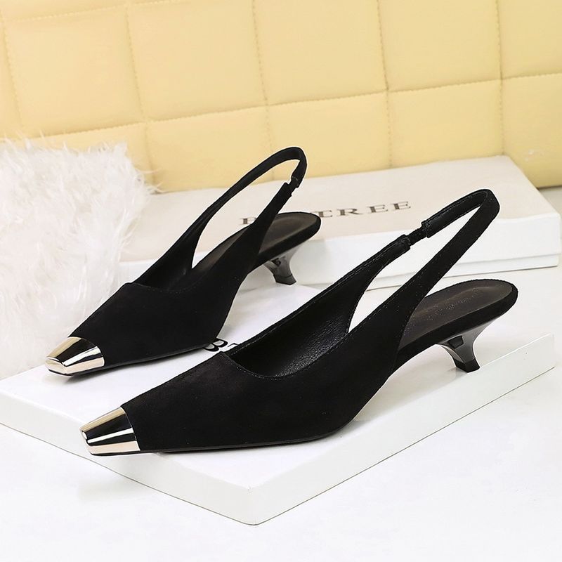 5316 Korean Style Metal Pointed Toe Suede Shallow Mouth Back Strap Low Single Women's Wine Glass Heel Party Backls
