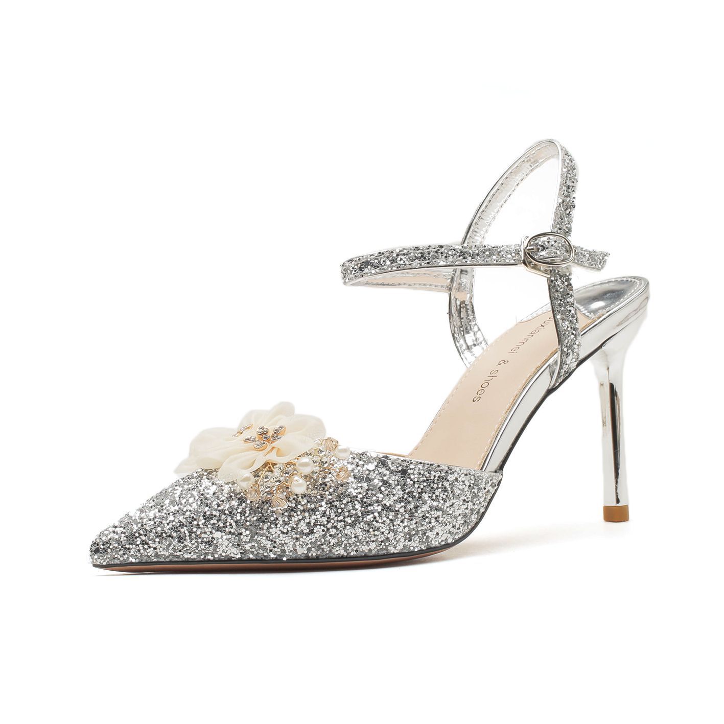8188-1-003 Sequin High Heels Sandals Two-Way Wear High-End Feel Party Wedding Shoes Commuting Versatile