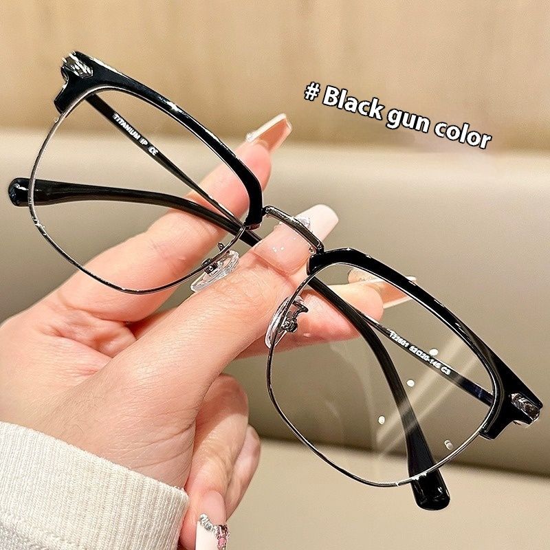 8637 New Eyebrow Glasses Male Internet Celebrity Ultra Light Half Frame with Degree Protective Flat Mirror