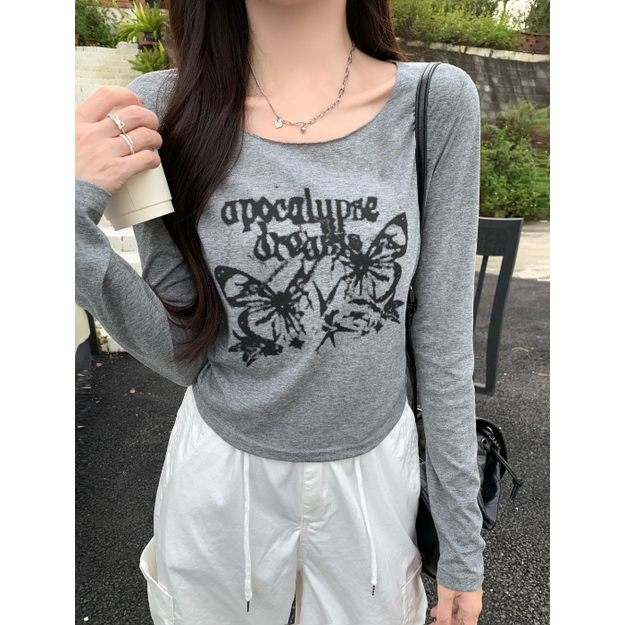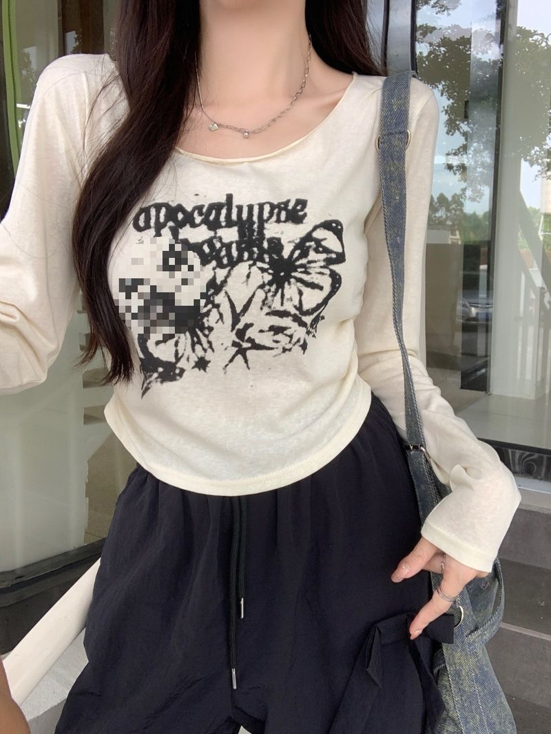 878 # 26 count pure cotton (100% cotton) 2024 autumn long sleeved T-shirt for women with micro transparent printing