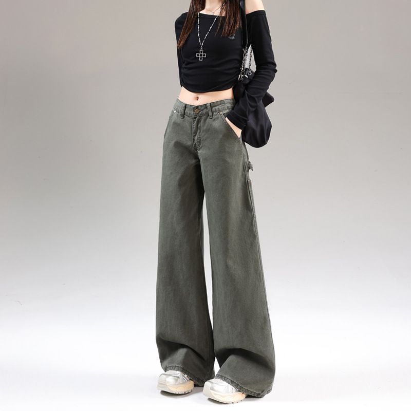 American Retro Wide-leg Tooling Jeans Women's Spring And Autumn 2025 New Low-rise Loose Straight Wide-leg Pants