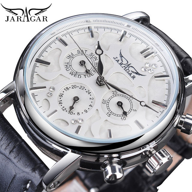 Jaragar Belt Men's Automatic Mechanical Watch Three Plate Six Pin Week Men's Wrist Band Diamond
