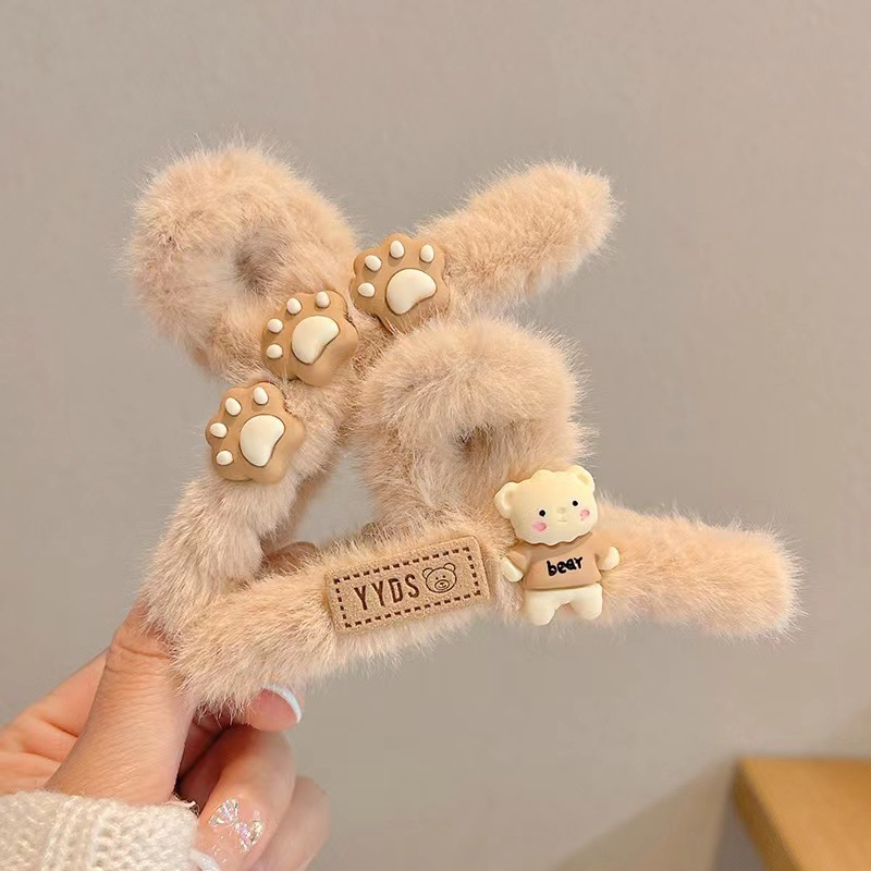Autumn and Winter Plush Clip Large Instagram Wind Shark Clip Back Head Spoon Hair Clip Children's Headwear Plush Hair Clip