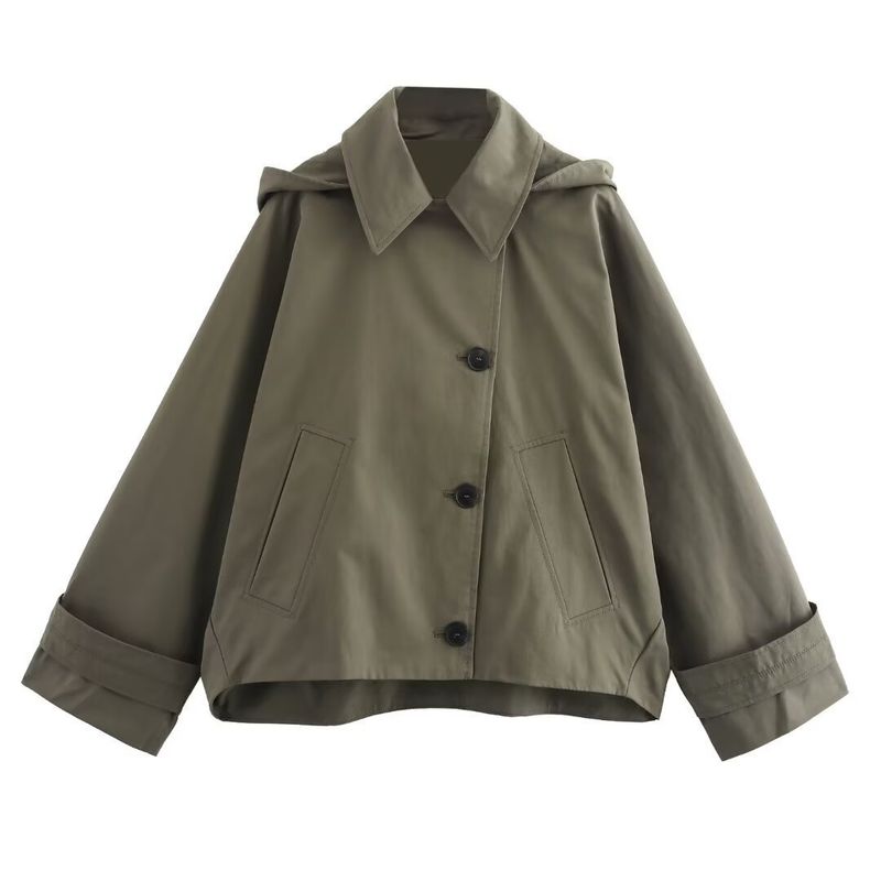 Autumn New Women's Versatile Solid Color Lapel Single Breasted Long Sleeved Pocket Hooded Trench Coat Jacket