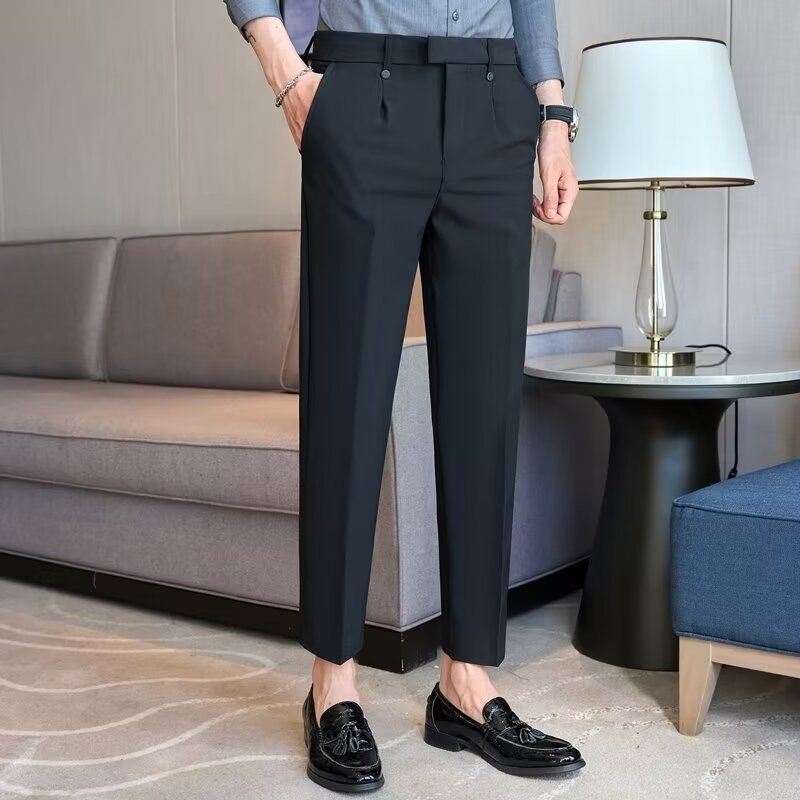 Autumn thin men's cropped suit pants with a high-end feel, slim fit, small feet, British casual suit pants, business non ironing pants