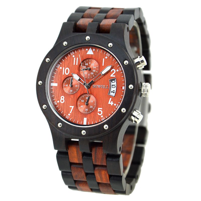 BEWELL New Fashion Sports 6-Pin Multi-Function Quartz Strap Calendar Wooden Watch