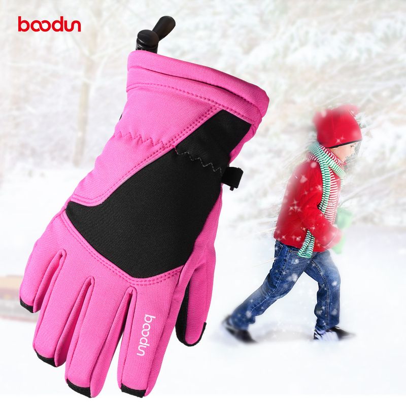 Boodun, 4-10 years old, solid color children's skiing ice skating cartoon, outdoor cold proof and warm gloves, winter