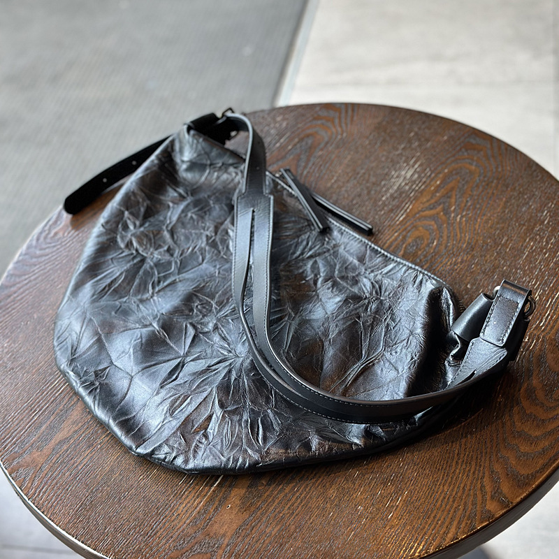 2023 Autumn/Winter Genuine Leather Folded Tote Women's Large Capacity Underarm Crossbody Cowhide Shoulder Bag Casual