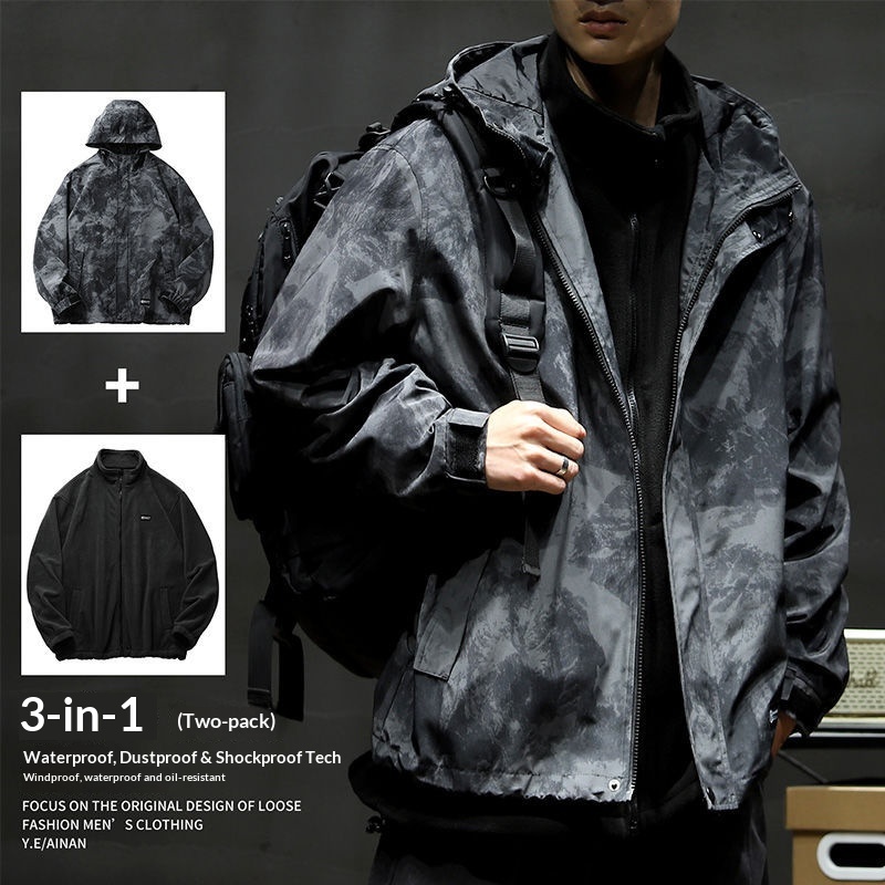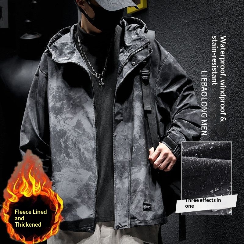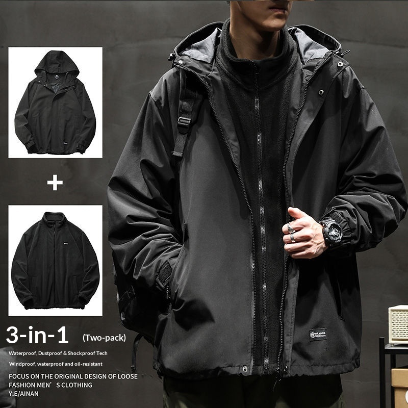 boy Boy Autumn Winter Men's 3-in-1 Detachable Windproof Plus Size Workwear Functional Fleece Jacket Wholesale