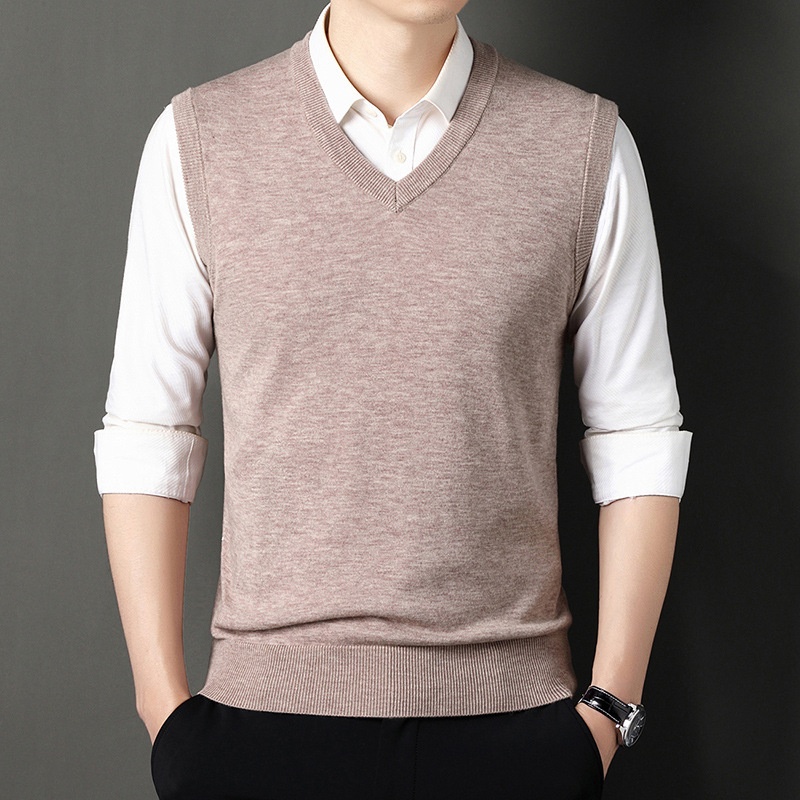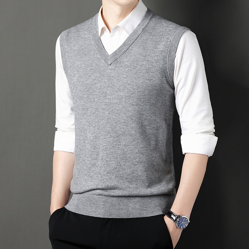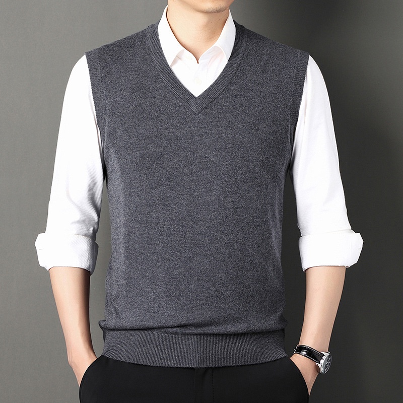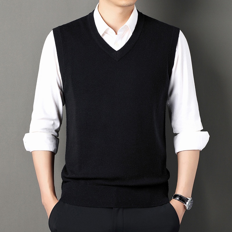 boy Boy Boy Boy Autumn Winter Wool Knitted Men's V-Neck Base Shirt Dad's Sleeveless Vest Sweater Casual Style