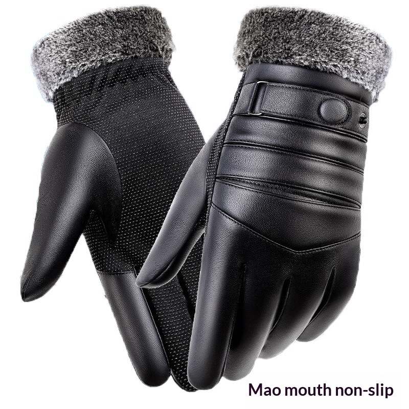 boy Boy Boy Men's Leather Gloves Winter Windproof Warm Fleece Lined Thickened Outdoor Sports Cold-Proof Waterproof Cycling