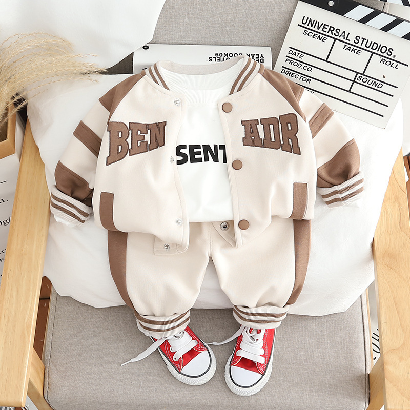 Boys' 2023 Spring New Fashionable Children's Wear Korean Version Handsome Alphabet Baseball Jersey Three Piece Set