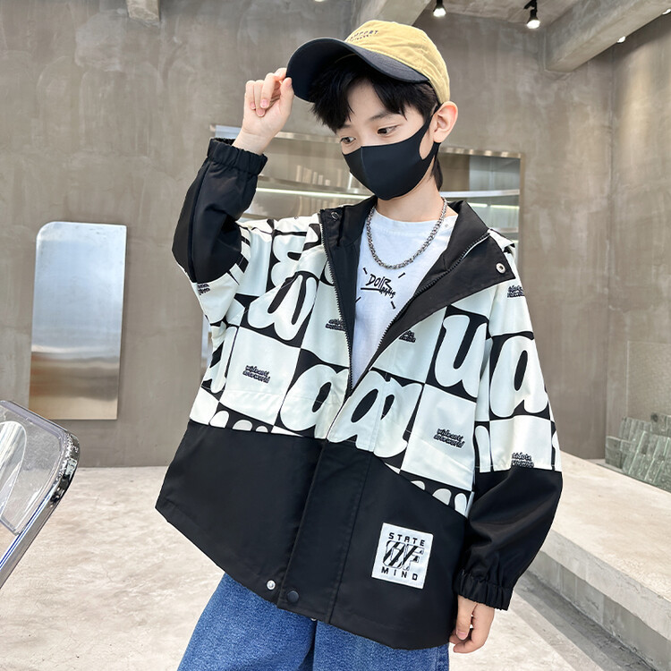 Autumn style; Boys' printed letter color blocking Korean windbreaker, size 120-170