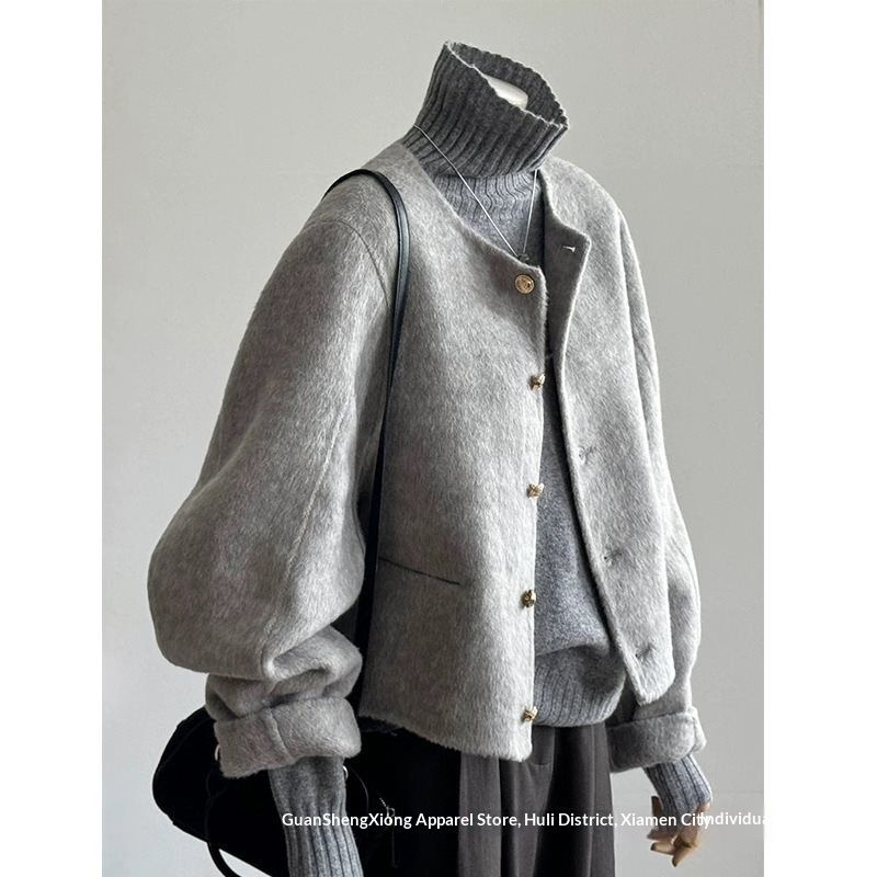 Calm Calm Double-Sided Cashmere Gray Short Wool Coat Women, Autumn Winter 2025 New Design Woolen Jacket For Petite Figures
