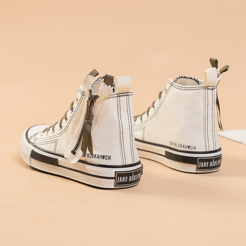 Canvas For Women Spring And Autumn Season New Student Classic Zipper Casual Versatile High Top Canvas White Board