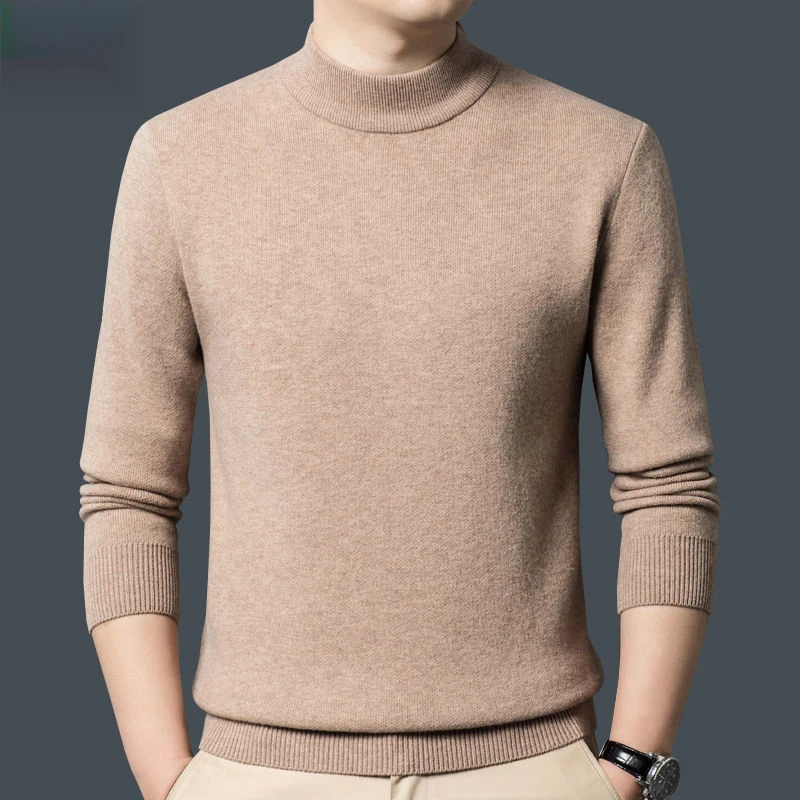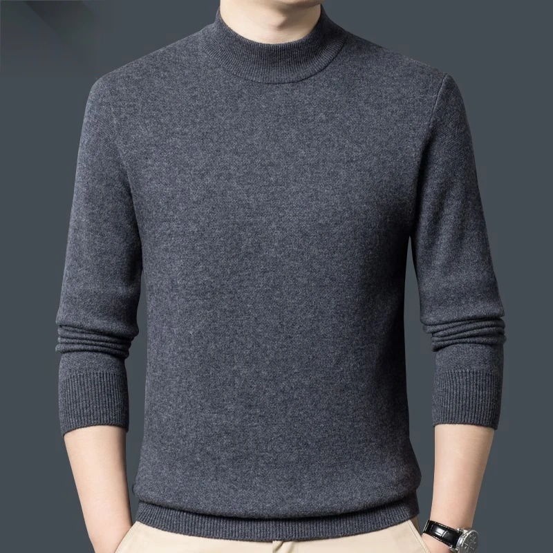 Cashmere 100% Middle aged Men's Solid Color Half High Collar Black Underlay Sweater Men's Thickened Sweater Pullover Sweater Winter
