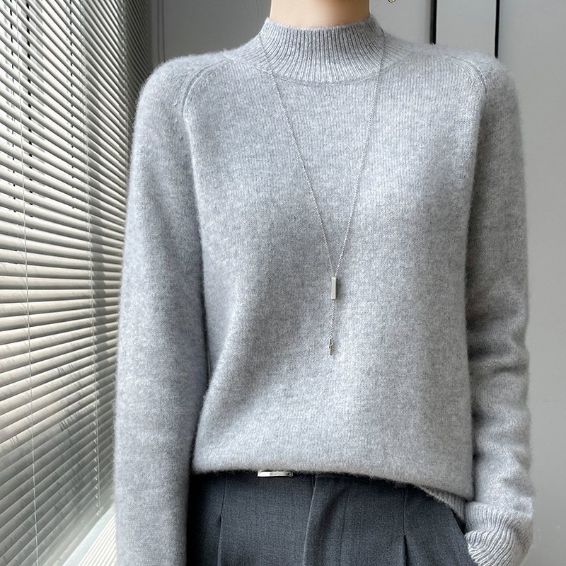 【 Cashmere Family 】 Half high neck sweater, short woolen base sweater, women's soft and loose, thick knit sweater, inner layer