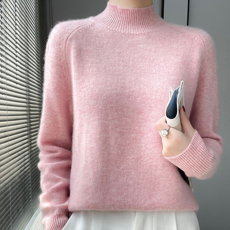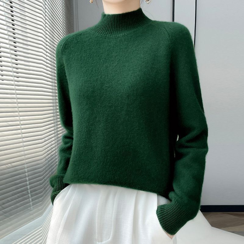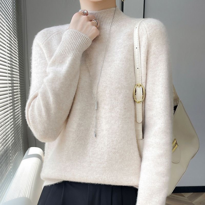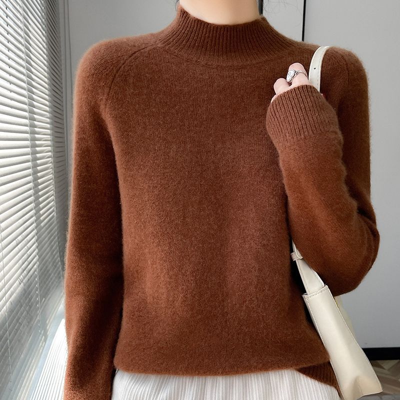 【 Cashmere Family 】 Half high neck short woolen base women's soft and loose, thick knit sweater, inner layer