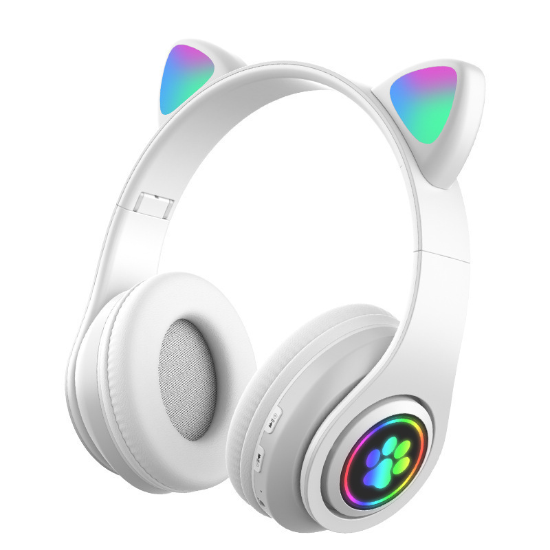 B39M Cat Ear Bluetooth Headset Headworn Color Cartoon Foldable High Quality Cute Cat's ears (Steamed cat-ear shaped bread) Glow