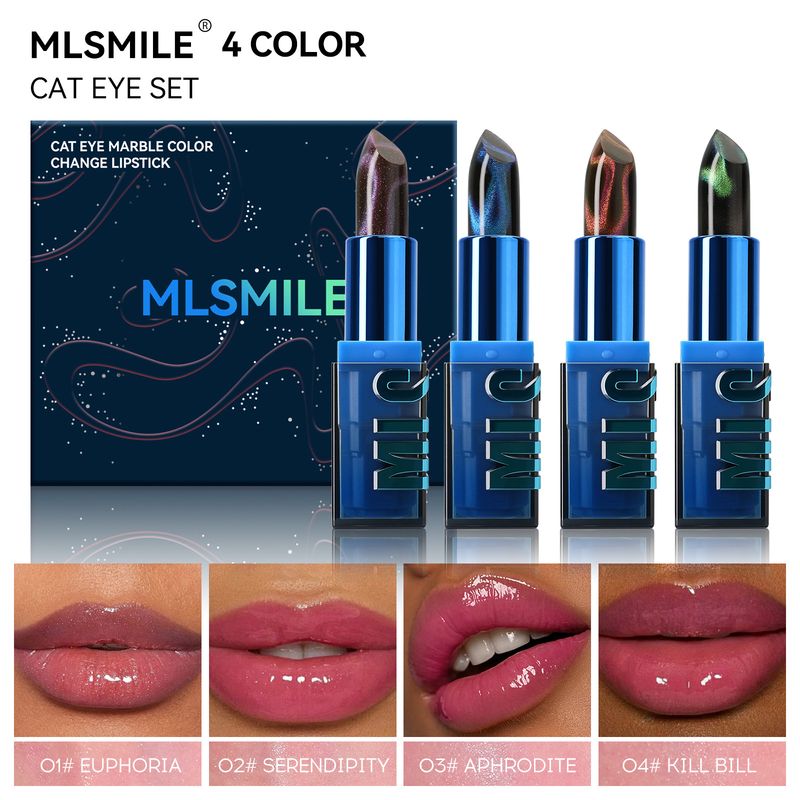 Cat Eye Shiny Color Changing Lipstick Set Non-stick Cup Moisturizing Pearlescent Fine Flash Temperature Change Lipstick