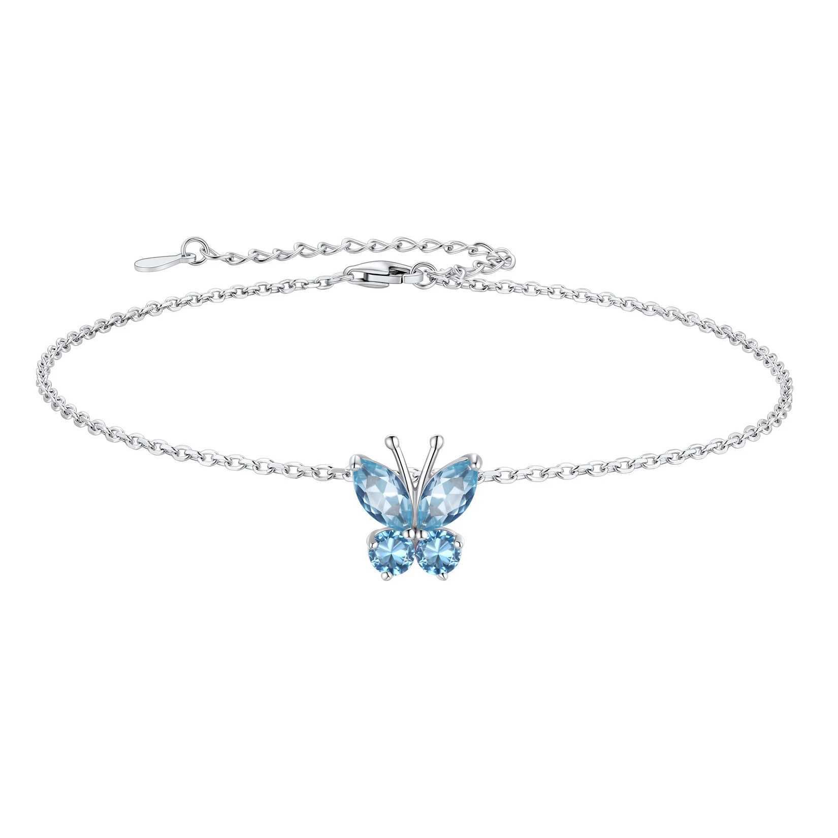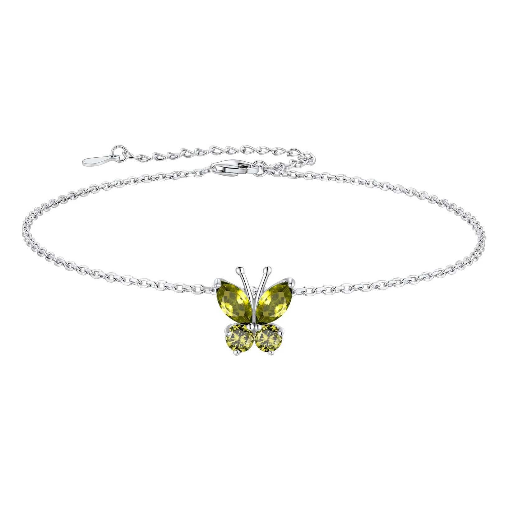 Anklets U7 Butterfly Ankle Womens S Bracelet Birth Stone Pure Sier Adjustable Beach Jewelry Length 8.5 -10.5L2403