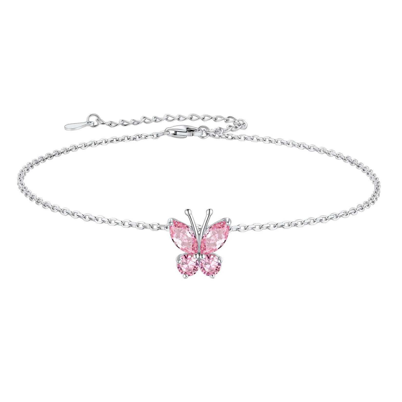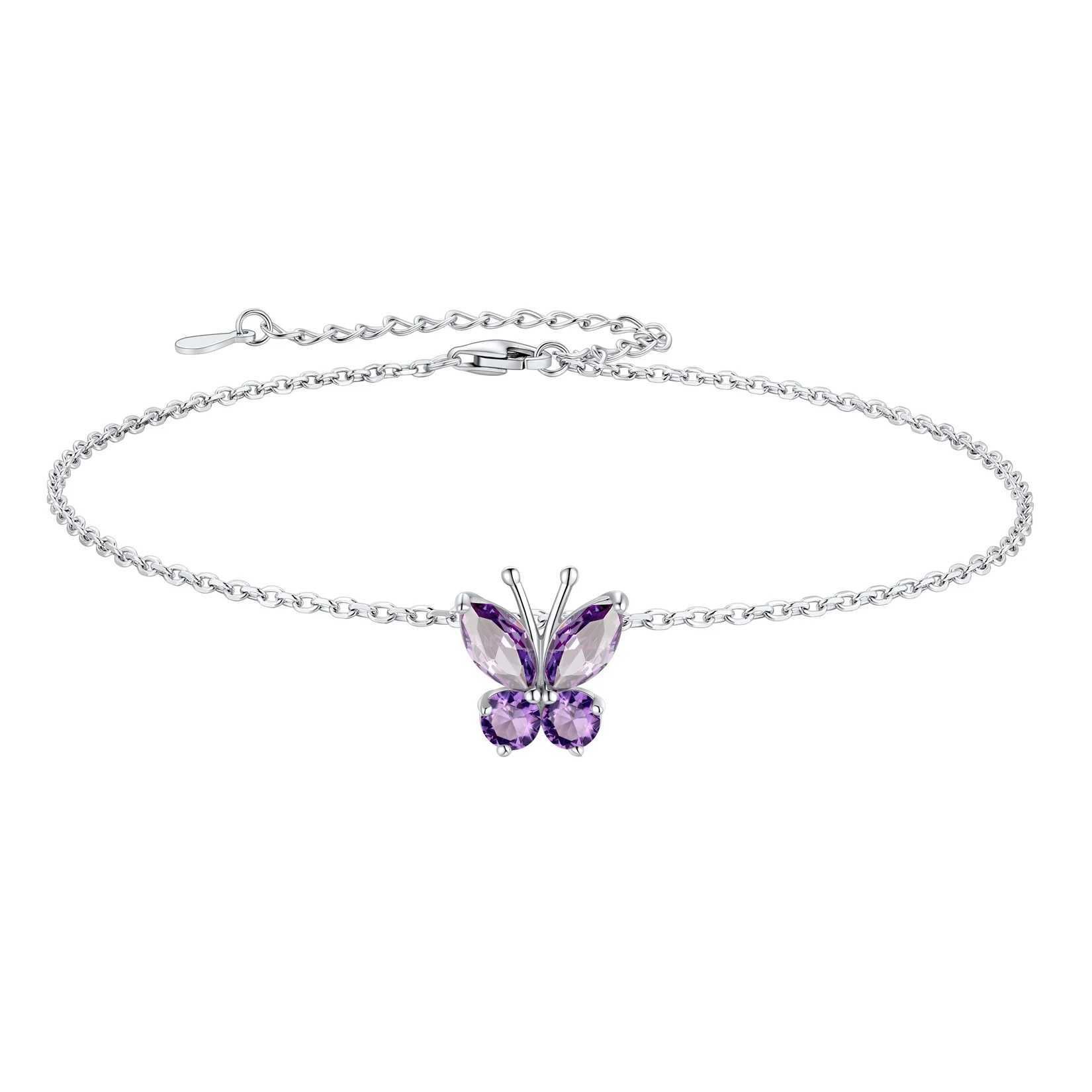 Colorful Butterfly Ankle, Stepping Ankle Bracelet, Pure Sier Animal Birthstone Ankle, Cubic Zirconia Ankle, Waterproof Long Ankle Bracelet, Suitable for Girls.