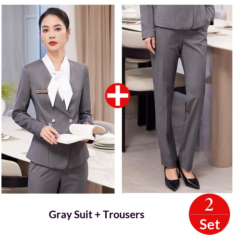 ChicShe Gray Professional Suit Set Unisex Hotel Front Desk Reception Manager Property Work Uniform